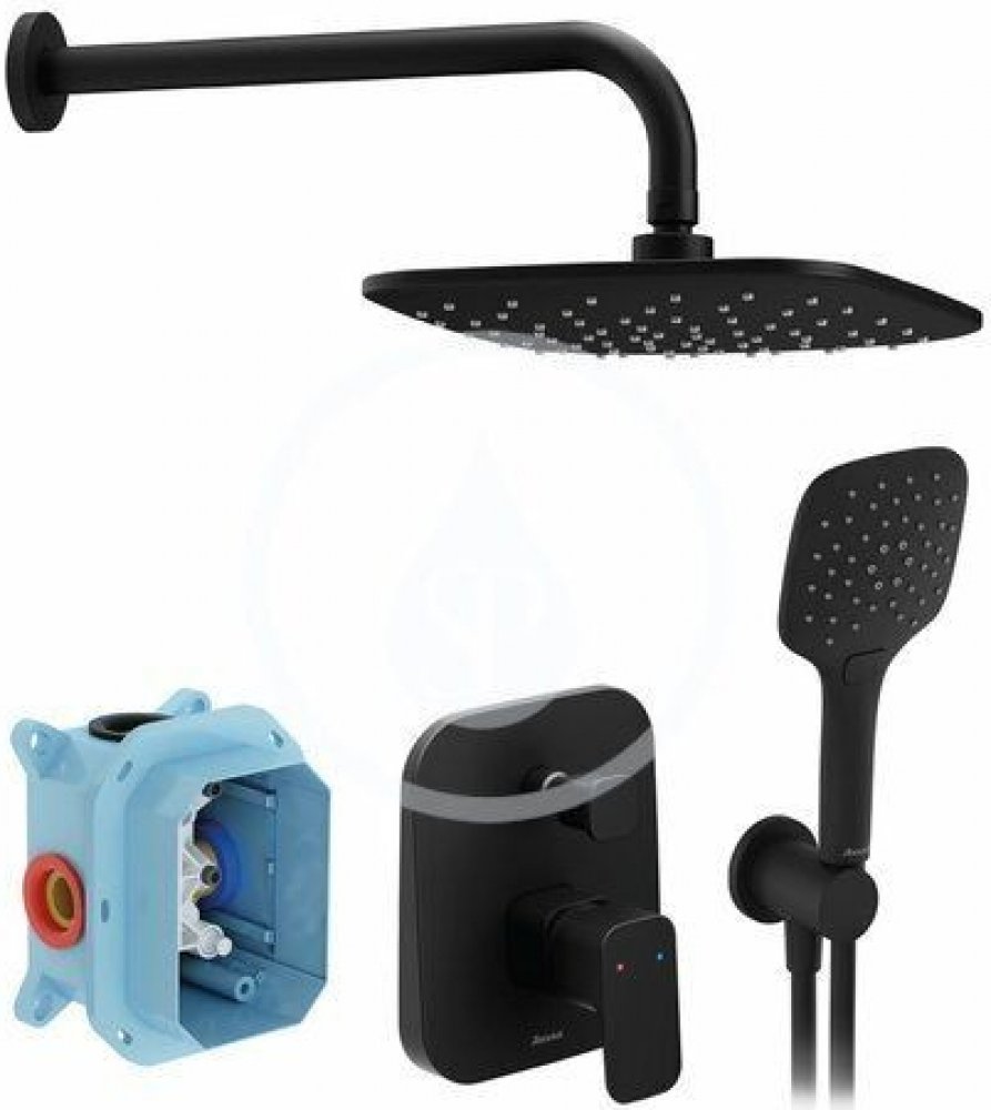 Sprchový systém s pákovou baterií. Sprchový podomítkový set 10° Free rozšíří možnosti vašeho sprchového koutu a zajistí další centimetry volného prostoru. Nejen rutinní očista, ale zcela nový relaxační zážitek z dopadajících kapek vám umožní komfort hlavové sprchy s funkcí přisávání vzduchu i ruční sprchy s třemi režimy průtoku vody. Svým uložením na stěně se podomítková baterie o 10° mírně naklání směrem k uživateli. Ovládání je tak ještě příjemnější. Baterie je připravena pro použití instalačního tělesa R-Box, který významně usnadňuje práci a zlepšuje výsledek celého díla. Vše je esteticky schované pod obkladem, bez zbytečných trubek. Černá povrchová úprava ihned upoutá pozornost a dodá vaší koupelně vyšší úroveň luxusu.