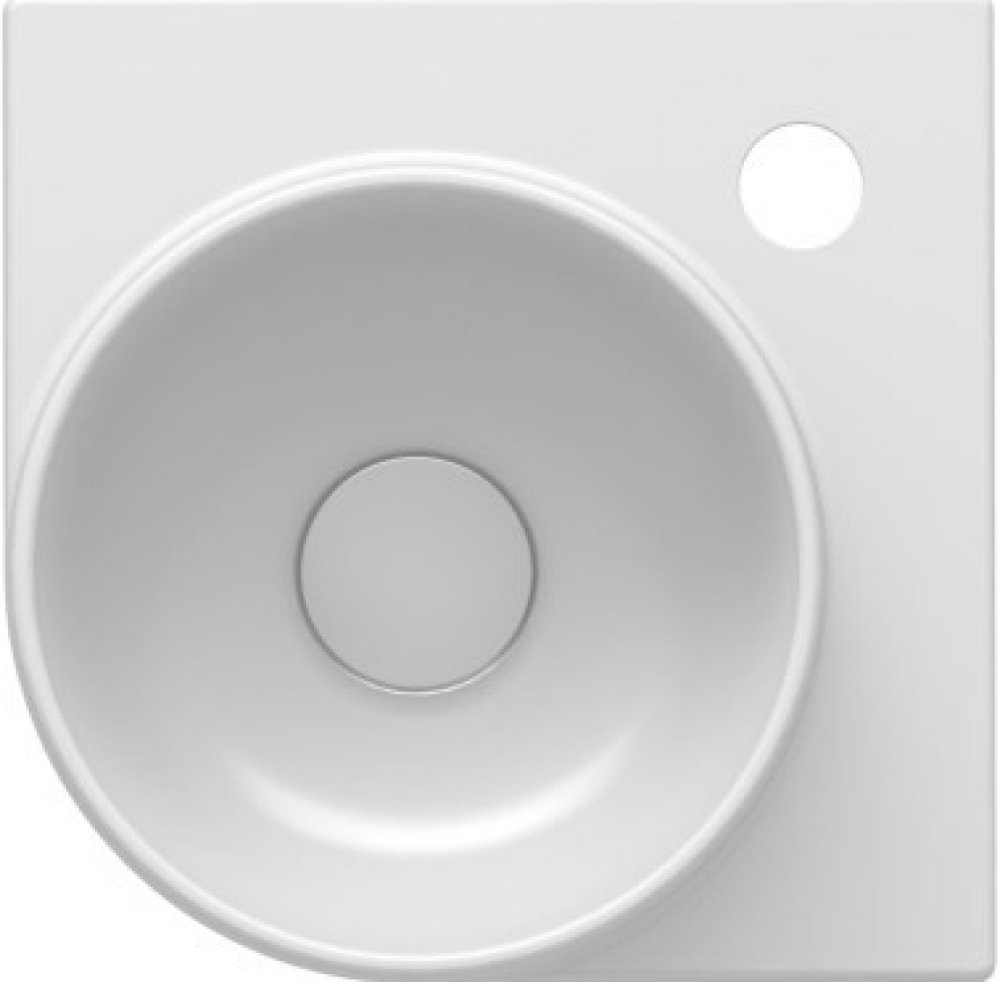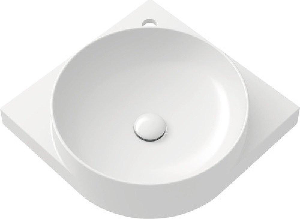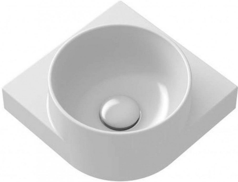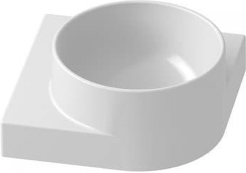 Keramické rohové umývátko Yard 280 C charakteristické svým kruhovým tvarem a zapuštěnou odkládací plochou.