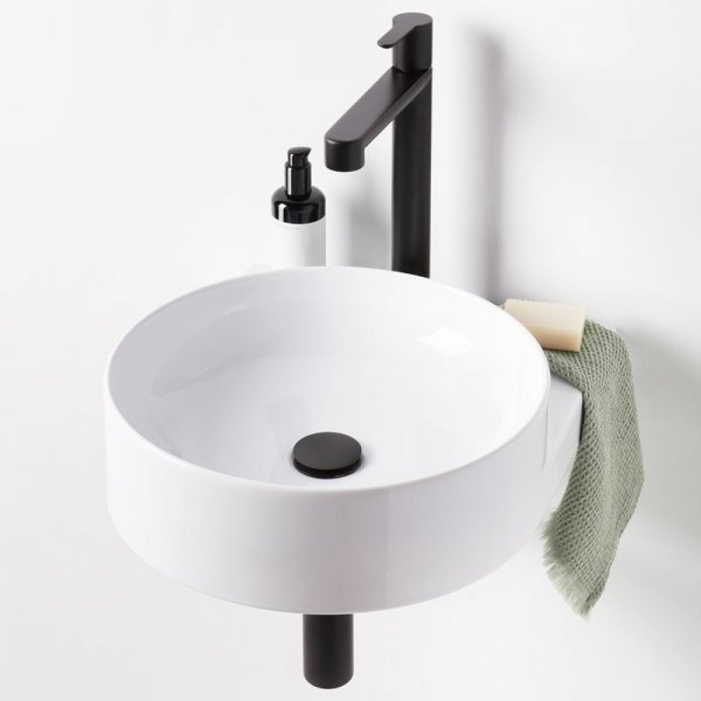 Yard nepotřebuje žádný nábytek. Instaluje se přímo na zeď pomocí ocelové konzole. A tu neskrýváme. Naopak. Konzole ladí s tvarem umyvadla a podtrhuje jeho celkový dojem.
