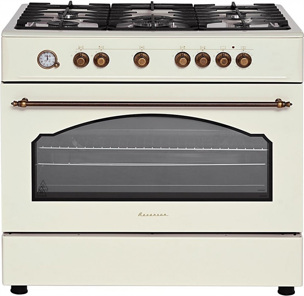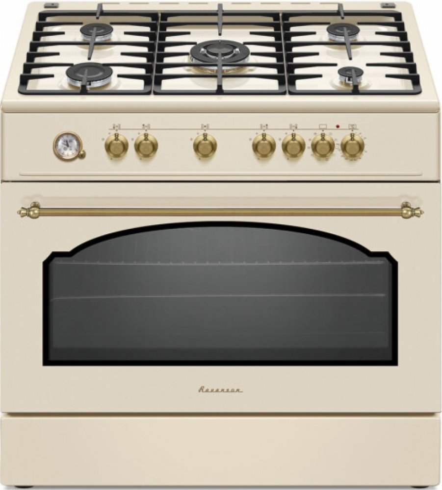 Plynový a elektrický sporák Ravanson Retro KWGE–90ARC (krémový)