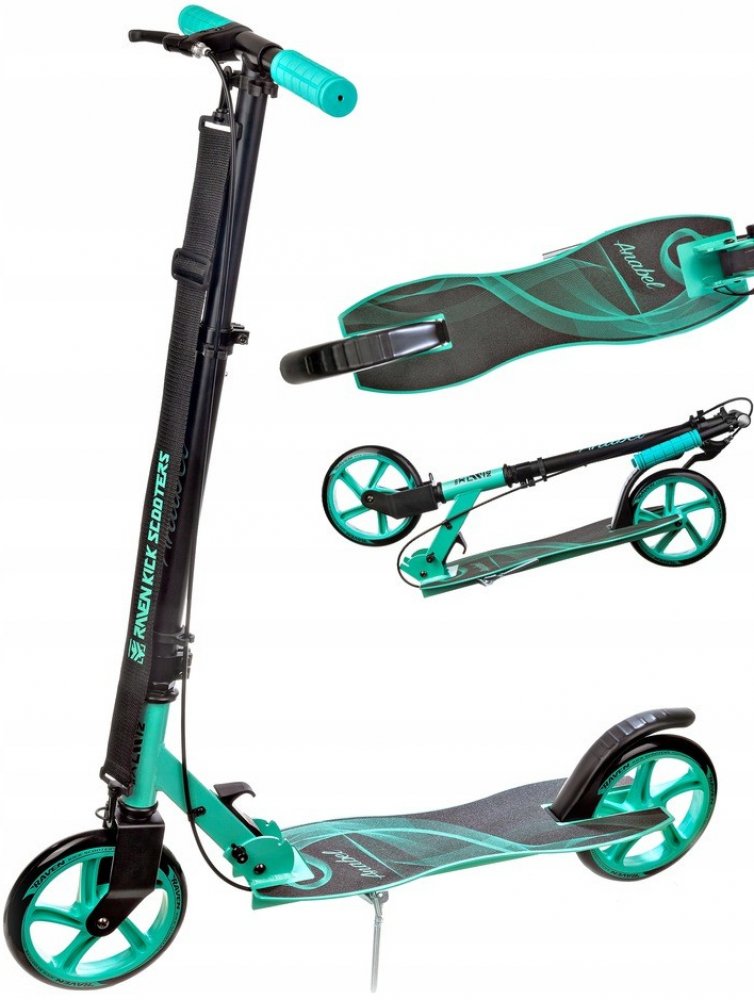 Materiál koleček - u skládacích koloběžek rozlišujeme 3 nejoblíbenější typy koleček: PVC, gumová a nafukovací. Kola z PVC jsou tvrdá, často hlučná - kola, která mají často problémy se zdoláváním nerovností, jejich jedinou výhodou je nízká cena. Koloběžky RAVEN nejsou tímto typem kol vybaveny. Gumová kola jsou nejčastěji používanými koly ve skútrech. Jsou vhodné pro jízdu na povrchu s četnými nerovnostmi. Na druhé straně jsou nafukovací kola ideální pro lidi, kteří chtějí snížit pocit vibrací na minimum a vyrovnání nerovností je mnohem lepší než kompenzace tlumičů ve skútrech.
