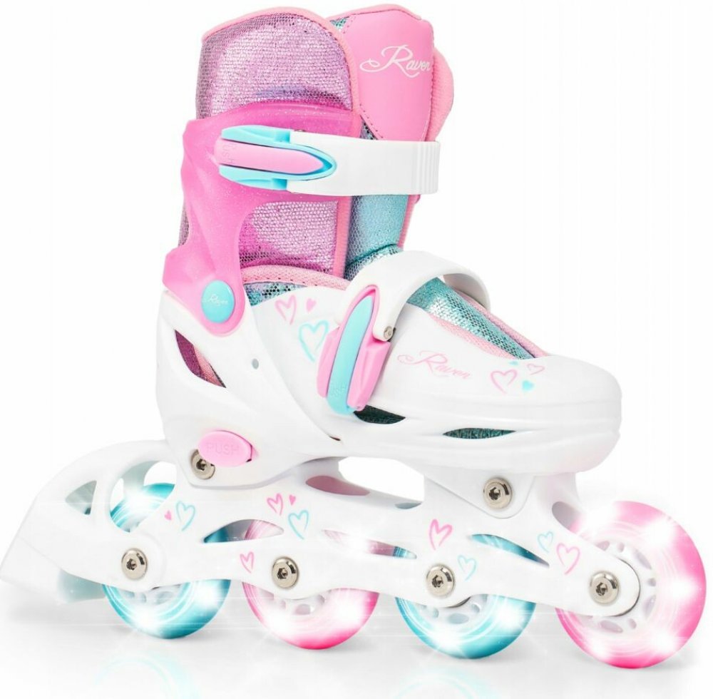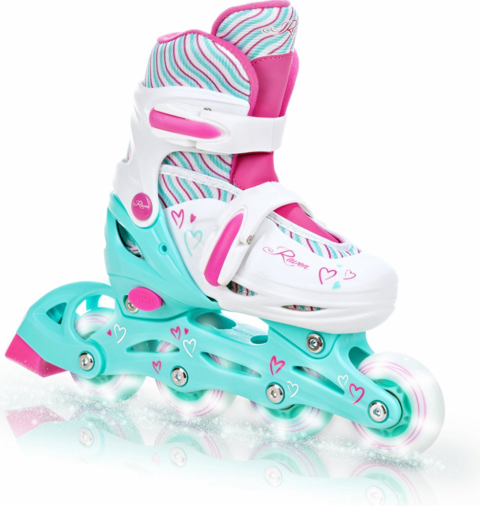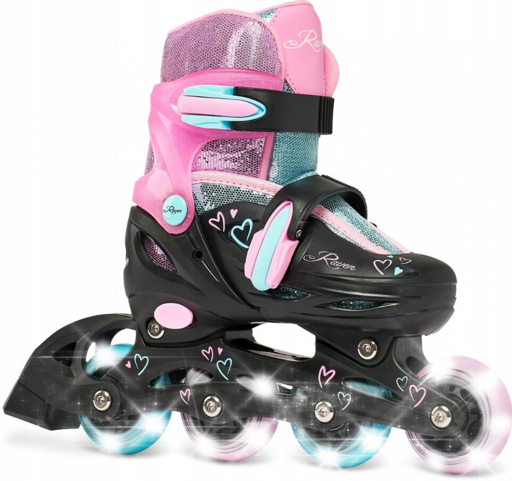 Velikostně nastavitelné (rostoucí) kolečkové dívčí inline brusle. Brusle jde zvětšovat v uvedeném rozsahu velikostí. • Ložiska: Abec7 Carbon