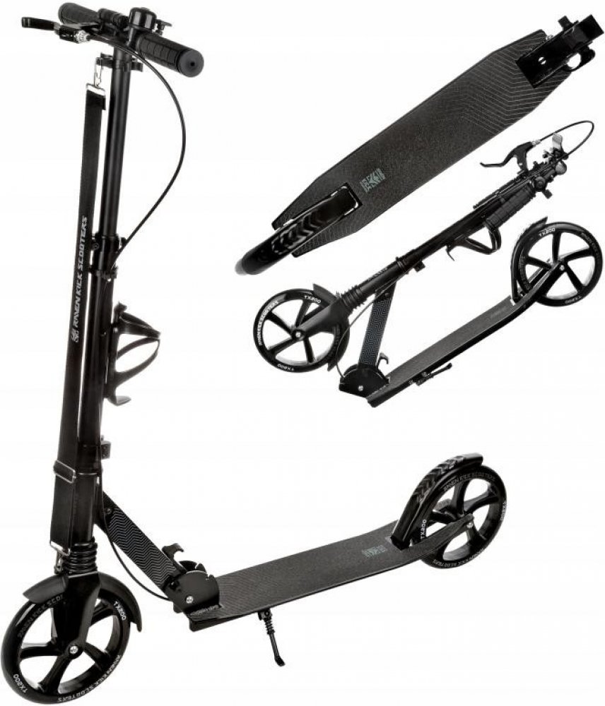 Skládací koloběžky RAVEN s kolečky o průměru 200 mm se doporučují dospělým i dětem od výšky přibližně 115 cm (děti od 5 let) do výšky 180 cm.