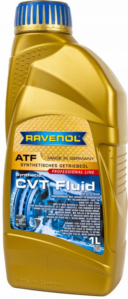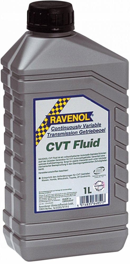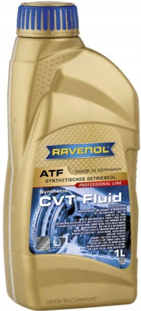RAVENOL ATF CVT Fluid je plně syntetický ATF (Automatický převodový olej) nejnovější generace CVT automatických převodovek. Byl vyvinut pro použití v CVT automatických převodovkách (plynule měnitelný pohyb ocelového pásu). Zajišťuje stabilní viskozitu i při vysokém mechanickém zatížení v tahu přenosových prvků (pás).
