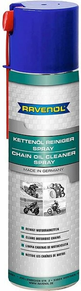 Velmi účinný čistič pro všechny typy řetězůČistič na řetězy od německé společnosti RAVENOL je ideálním pomocníkem pro precizní vyčištění řetězů silničních i terénních motocyklů. Aerosolový sprej využijete také pro čištění a odmašťování řetězů ostatních typů vozidel a zařízení. Čistič na řetězy se skládá z účinné směsi vysoce kvalitních syntetických přísad, která efektivně a rychle odmašťuje a čist...