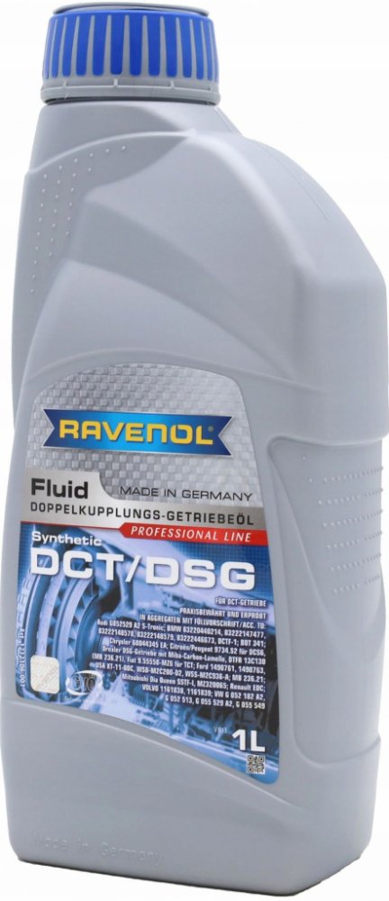 Doporučené použití: RAVENOL DCT/DSG Fluid je vhodný pro dvouspojkové převodovky od výrobců jako Volkswagen, Audi, Seat, Škoda, Ford, Volvo, Chrysler, Dodge, Mitsubishi a dalších. Je obzvláště doporučován pro převodovky VW DQ-250 (02E) a DQ-500 (0BT) podle specifikace VW G 052 182, stejně jako pro DL-501 (0B5) podle specifikace VW G 052 529 pro systémy S-Tronic.