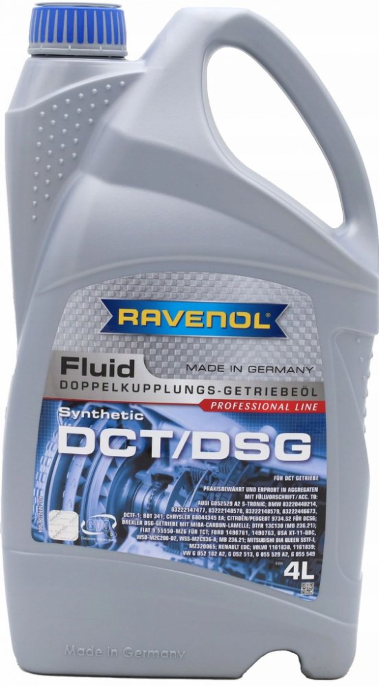 Převodová kapalina RAVENOL DCT/DSG je syntetická kapalina DCT (dvouspojková převodovka, dvouspojková převodovka) navržená na základě vysoce kvalitních hydrokrakových olejů se speciálním aditivem a inhibicí, které zaručují dokonalou funkci dvoj.