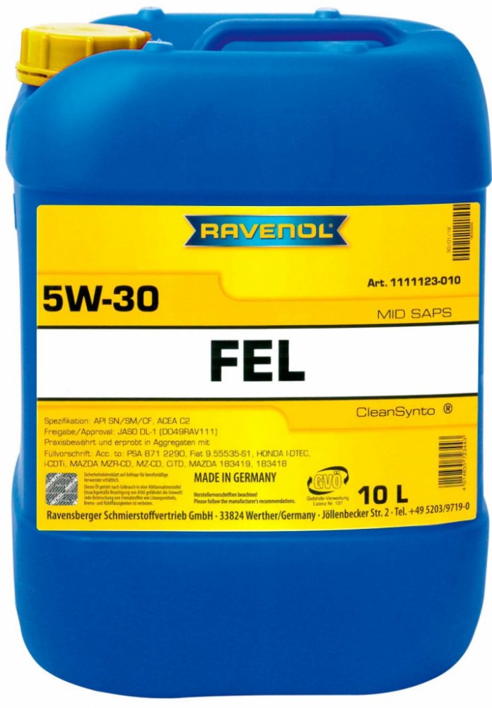 RAVENOL FEL 5W-30 je založen na nízkém obsahu popela aditiv, které jsou určeny pro použití v moderních osobních automobilech dieselových motorů, stejně jako osobních automobilů benzinových motorů s optimálním startováním studeného motoru, snížení spotřeby oleje a snížení emisí. Prodlužuje životnost filtru pevných částic DPF a třícestný katalyzátor TCW. HTHS> 2,9mPa.s. Navrženo pro úsporu paliva v Euro IV a Euro V motory s normálními i prodlouženými intervaly výměny oleje (až 50.000 km nebo dva roky).