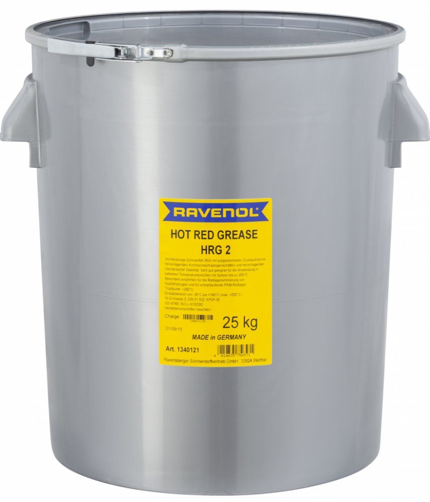 RAVENOL Hot Red Grease HRG 2 je mazací tuk s červeným lithiovým komplexem na bázi vysoce kvalitních základových olejů.Má vynikající pracovní odolnost, ochrana proti korozi a je vhodný pro mazání valivých a kluzných ložisek pod extrémním tlakem při vysokých teplotách ložisek. Zvláště se doporučuje pro mazání ložisek kol na užitkových vozidlech a pro vysokorychlostní ložiska kol osobních automobilů. Toto mazivo je velmi universální proto se používá jak v průmyslovém sektoru, tak i v sektoru motorových vozidel, zařízení, strojů, dopravníků, stavebních vozidel atd.