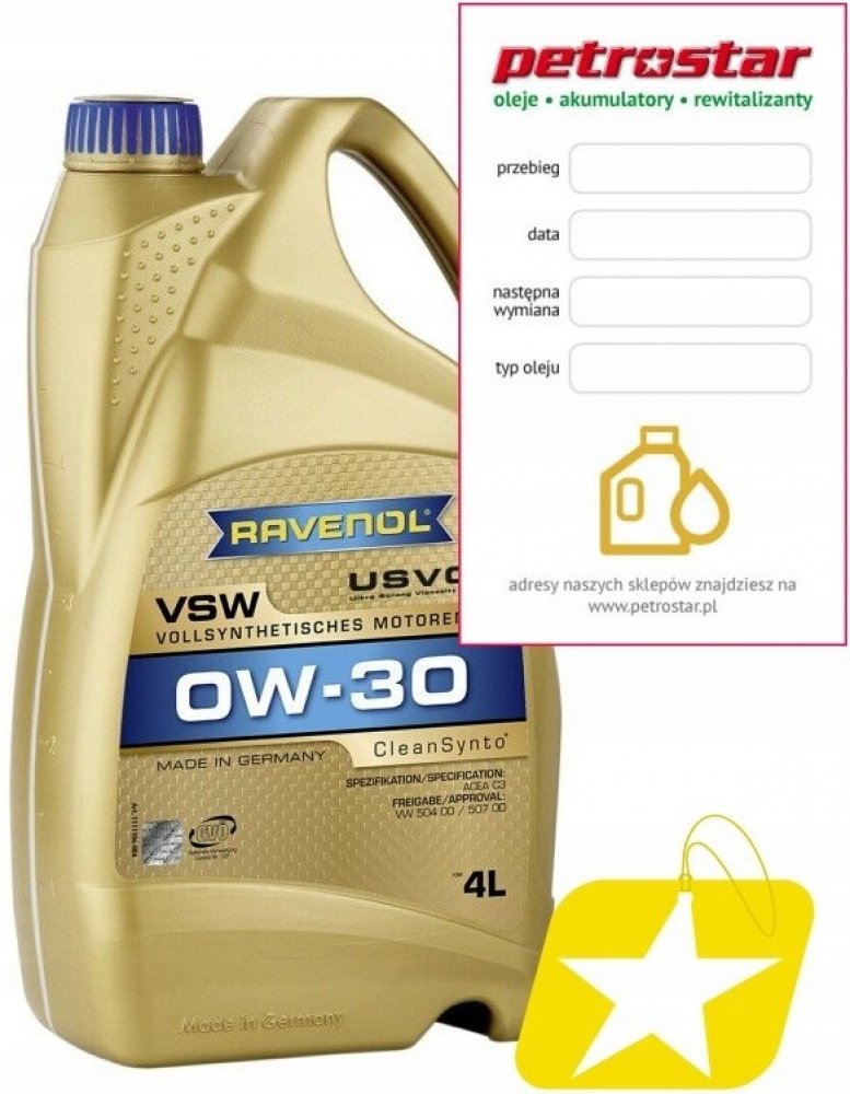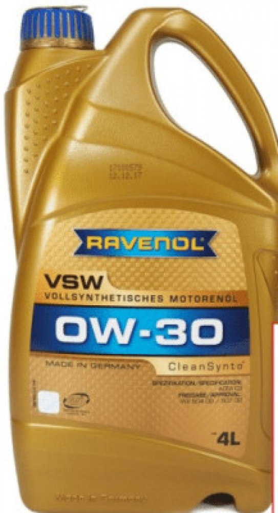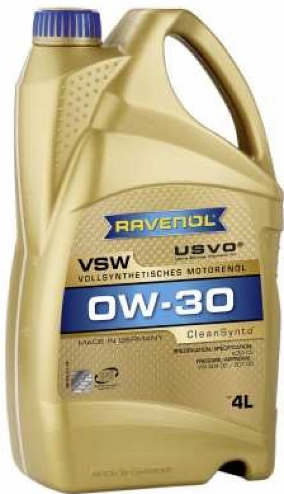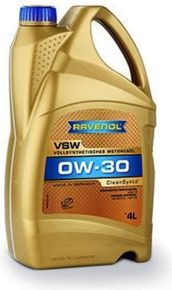 RAVENOL VSW SAE 0W-30 je plně syntetický motorový olej s nízkým třením PAO (Polyalphaolefin), zejména s technologií CleanSynto® pro benzinové a vznětové motory osobních automobilů s turbodmychadlem a přímým vstřikováním.