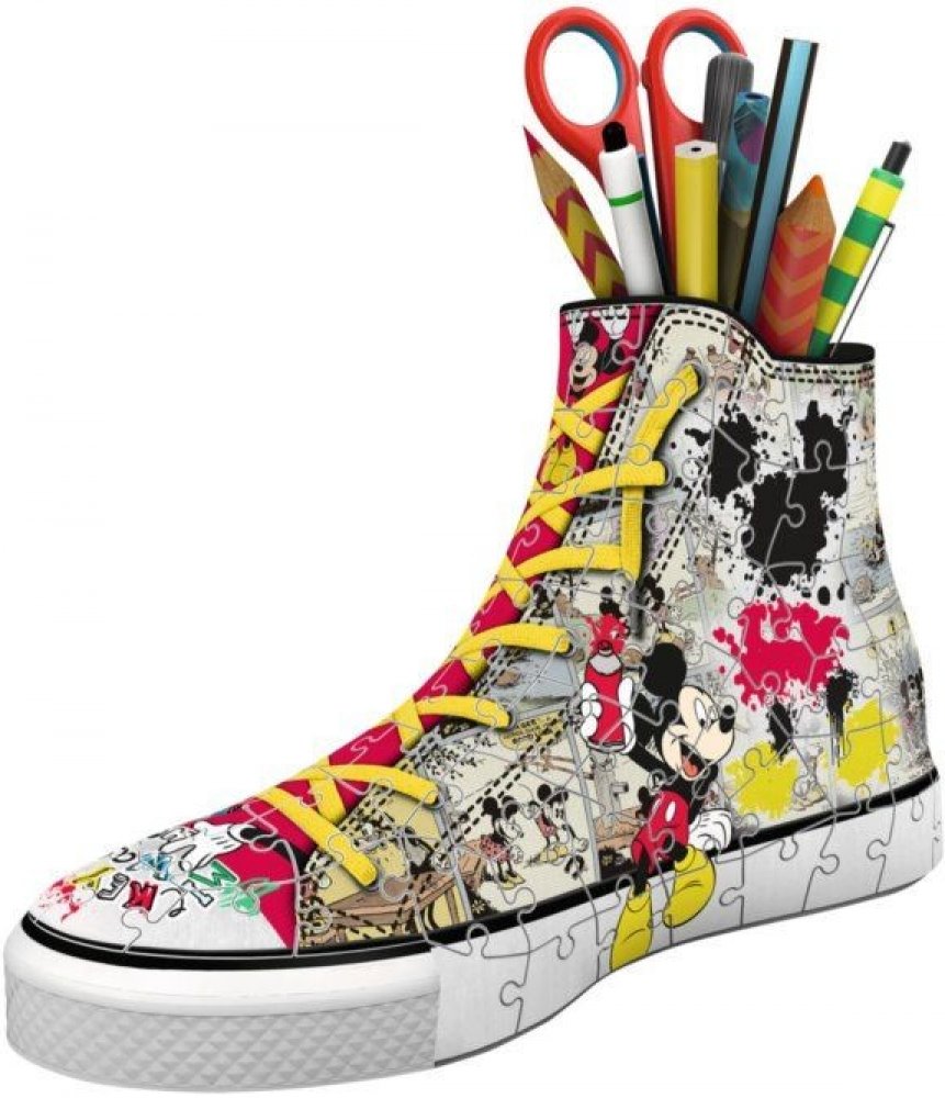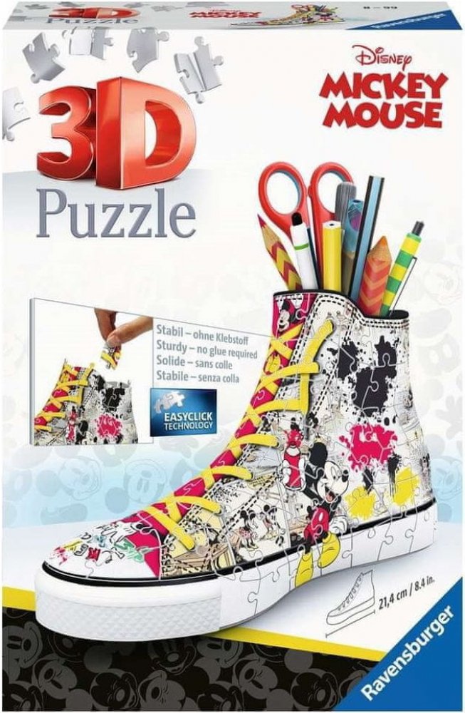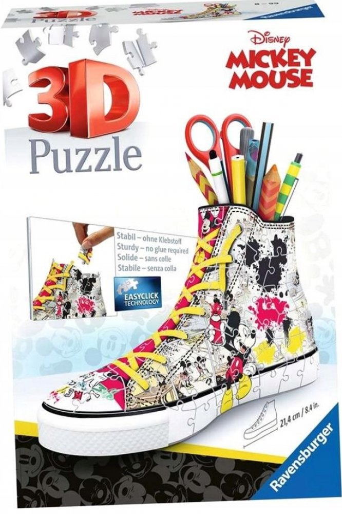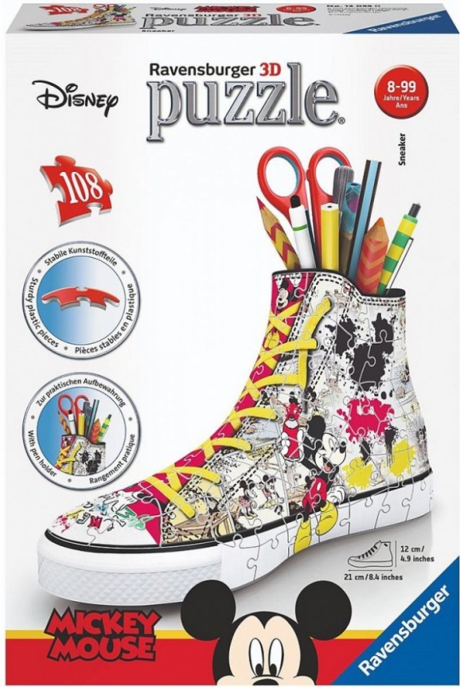 Geniální spojení pro milovníky tenisek a skládání! Poskládejte si 3D puzzle neotřelého tvaru, které oživí Váš stůl ... RAVENSBURGER se pustil do produkce 3D tenisek, které lze použít třeba jako originální tužkovníky pro pera, pastelky nebo třeba štětce. Speciální zakřivené nebo ohebné dílky, které přesně zapadnou na své místo, umožňují postavit designovou tenisku. Dílky jsou vyrobeny z pevného pla...