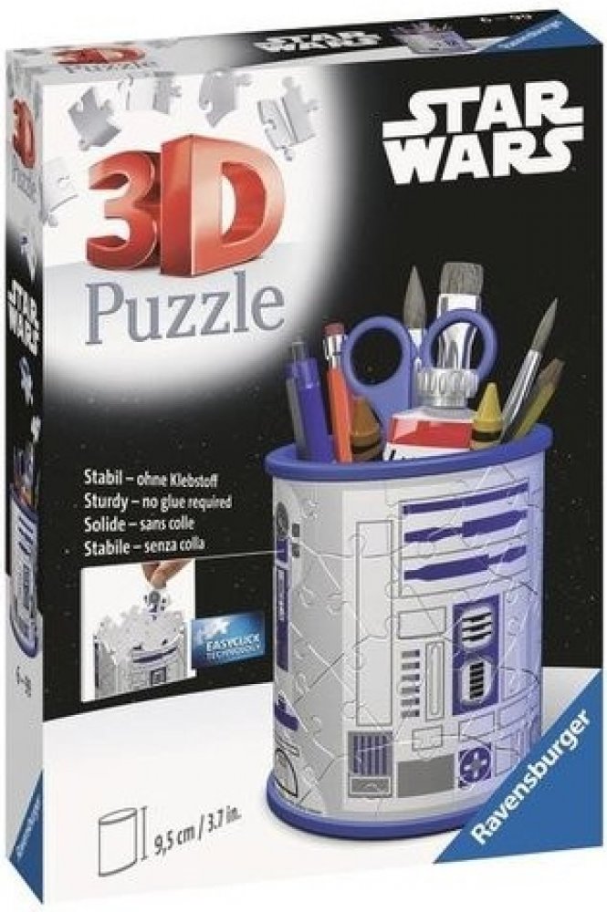 Tužky už se nebudou válet po stole a navíc bude krásný dárek vždycky na očích! Další z řady praktických předmětů ve formě 3D puzzle od výrobce RAVENSBURGER se stane skvělým dárkem pro každou příležitost. A nemusí sloužit pouze jako tužkovník, ale třeba jako stojánek na dekorativní kosmetiku a jiné věci. Speciální zakřivené dílky, které přesně zapadnou na své místo, vytvoří kouzelný stojánek nejen na psací potřeby, ale na cokoliv, co děti potřebují . Dílky jsou vyrobeny z pevného plastu a zaručí vynikající stabilitu bez nutnosti lepení. 3D puzzle RAVENSBURGER lze skládat podle motivu (obtížnější varianta) nebo podle praktického číslování na zadní straně dílků. Stojan má po sestavení výšku přibližně 9,5 cm o průměru 7,7 cm. Balení obsahuje: