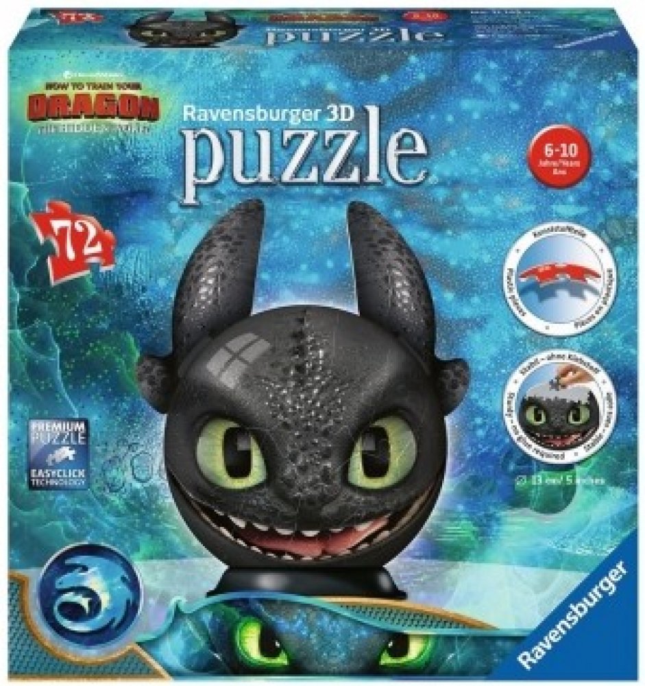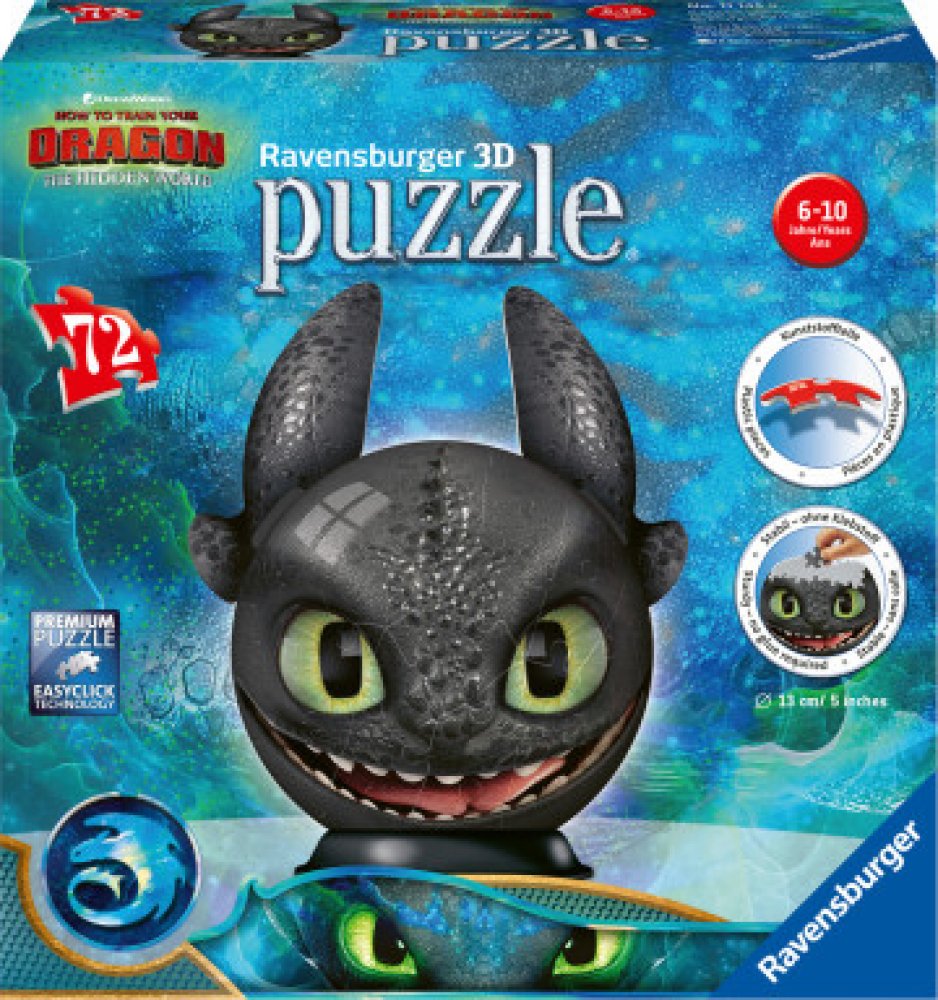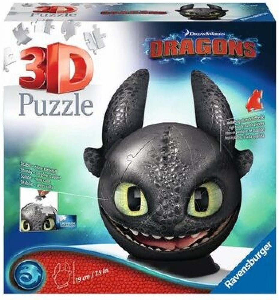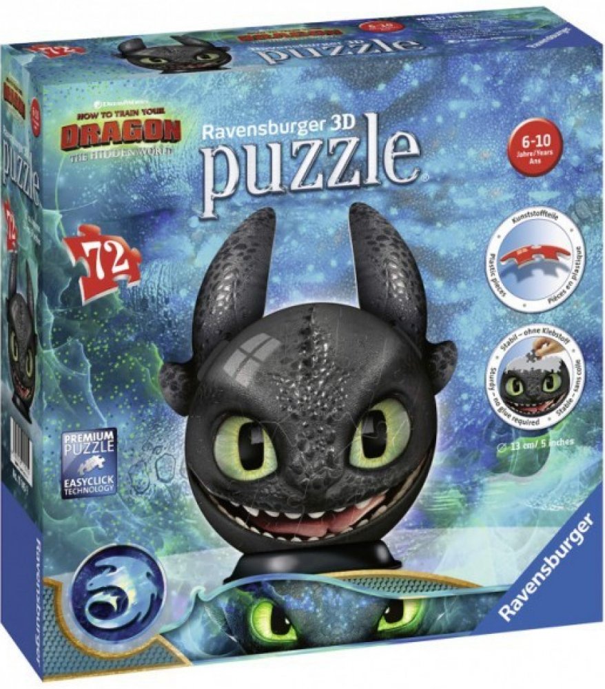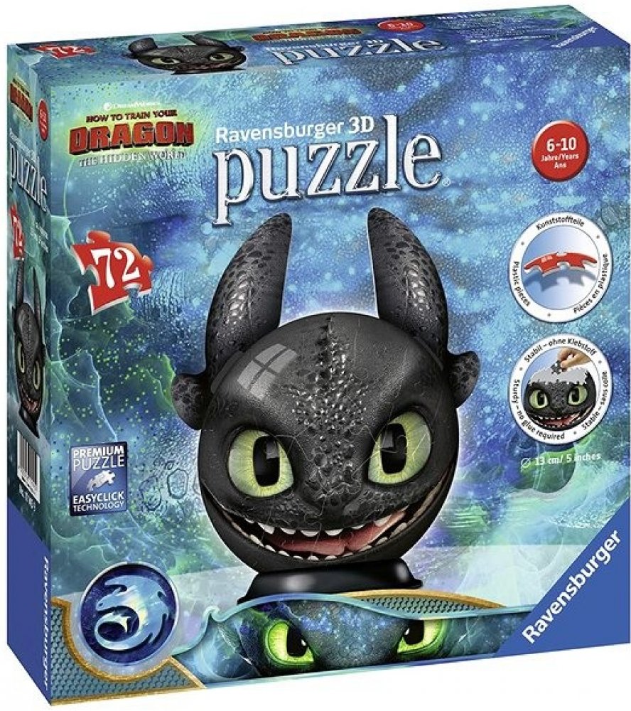Sestavte si stabilní kouli z vysoce kvalitních plastových dílků puzzle s motivem Jak vycvičit draka, které do sebe přesně zapadají díky klik-technologii bez lepení.