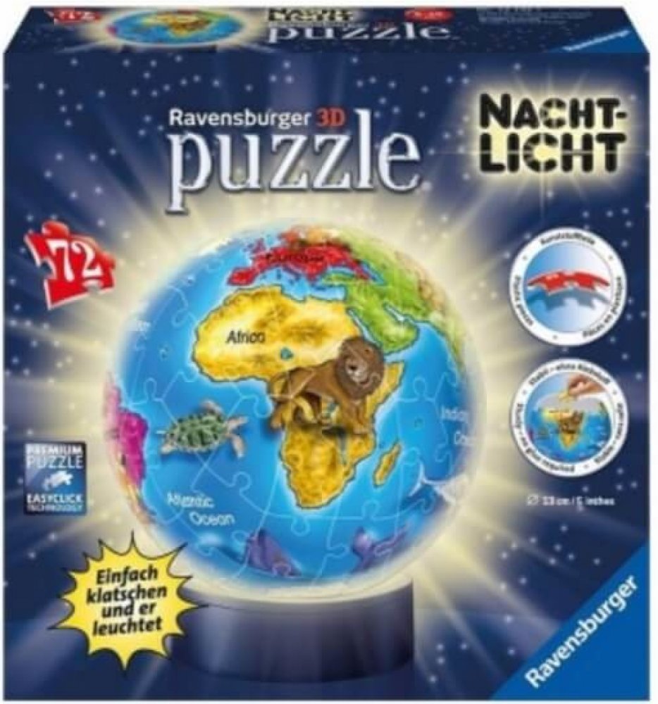 Díky noční edici Nachtlicht od Ravensburgeru může mít okouzlující svítící kouli s mapou světa i Vaše dítě. Puzzle je velmi oblíbené nejen díky snadné manipulaci, ale i stabilitě. Ke skládání nepotřebujete lepidlo, speciálně vyrobené zakřivené dílky do sebe jednoduše zapadnou a drží tvar.