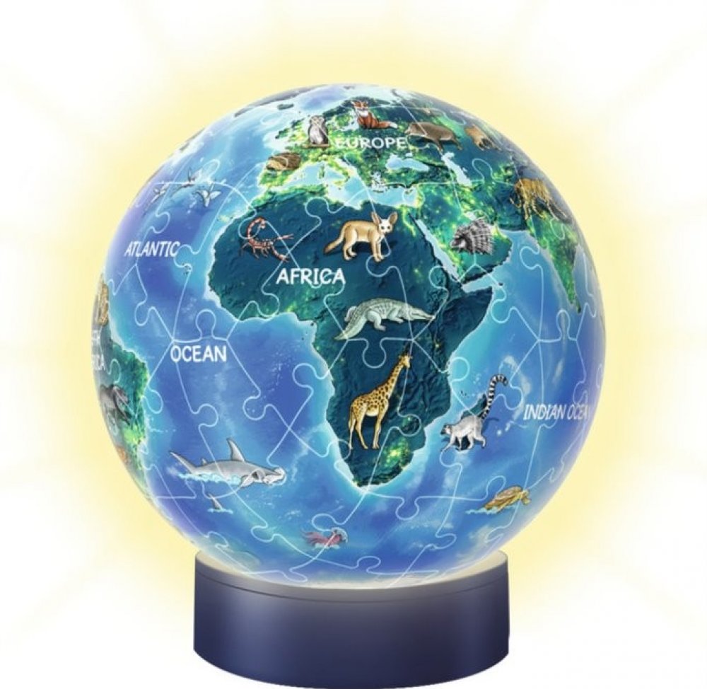 Kouli s motivem nočního globusu, která se navíc po tlesknutí sama rozsvítí, budou všichni kamarádi obdivovat. Při jejím skládání si navíc užiješ spoustu zábavy. Každý z perfektně propracovaných 72 plastových dílků se podílí na vytvoření pevné, hladké koule. Speciální zahnuté dílky jistě zapadají do sebe, koule je po sestavení stabilní a není potřeba použít lepidlo. Skládat lze podle obrázku nebo podle čísel - plastové dílky jsou ze zadní strany očíslovány. Průměr puzzleballu je 13 cm. Balení obsahuje: 72 dílků stojánek základnu s Led žárovkou stručný návod Baterie nejsou součástí výrobku. Ravensburger právem patří mezi přední evropské výrobce puzzle, hádanek, her a dalších výrobků pro děti. V současnosti má ve svém portfoliu na 8000 nejrůznějších produktů. Politikou společnosti je nabízet smysl a přinášet radost nejen těm nejmenším. Vysoká kvalita je důsledkem čerpání dlouholetých zkušeností, poznatků a dovedností během procesu výroby, spolu s využitím materiálů nejvyšší kvality. Nemálo důležitá je i přísná kontrola a bezpečnost práce. Rozměr složeného puzzle cca průměr 13 cm