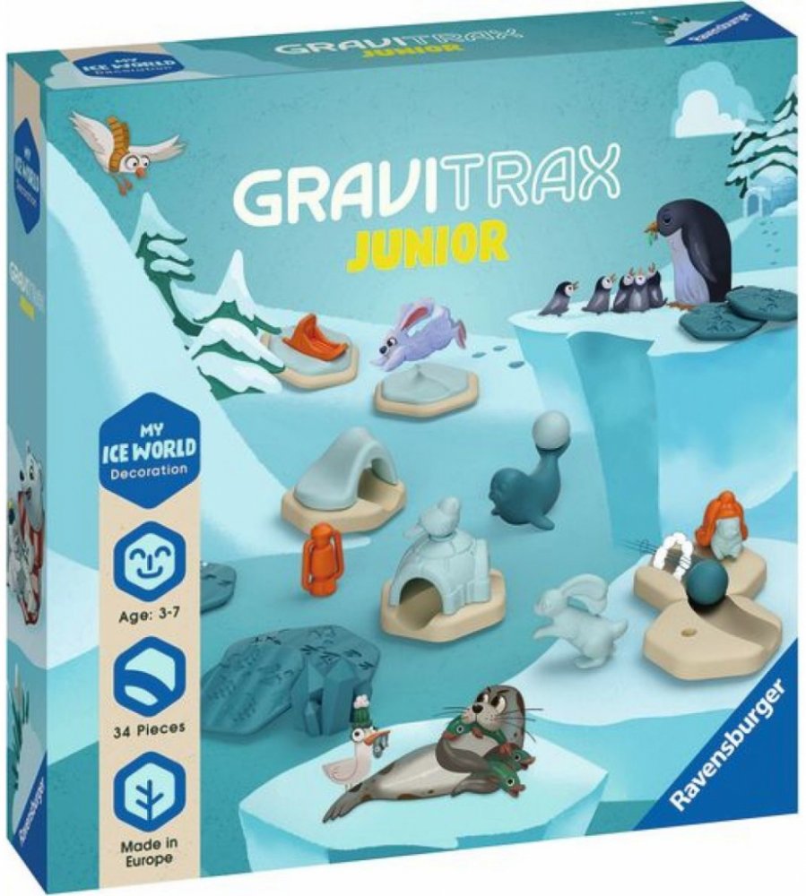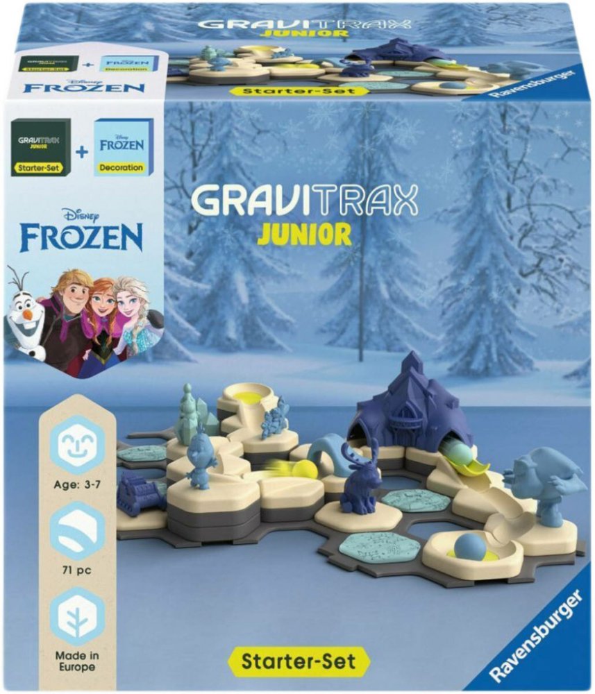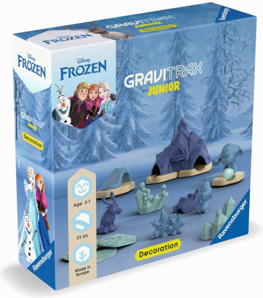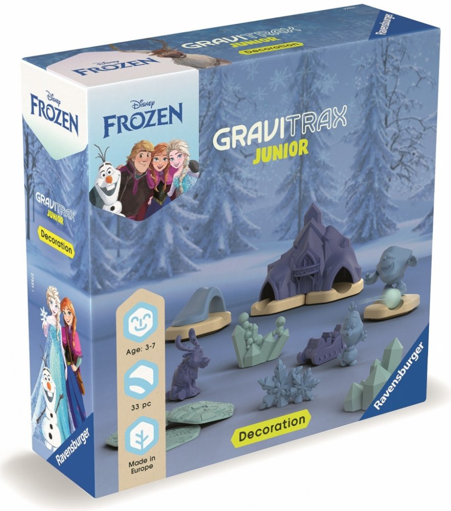 Startovní sada Gravitrax Junior + Dekorace: Ledové království. Vstup do světa GraviTrax Junior se startovní sadou a dekoracemi ve stylu Ledového království. Ti nejmenší si staví své vlastní světy z kuličkových drah a dekoracemi ze světa Ledového království jim dodají pohádkový nádech.