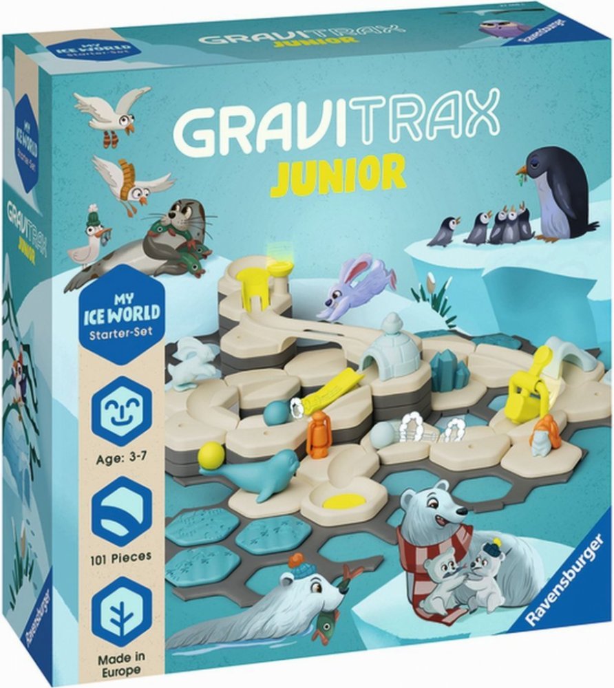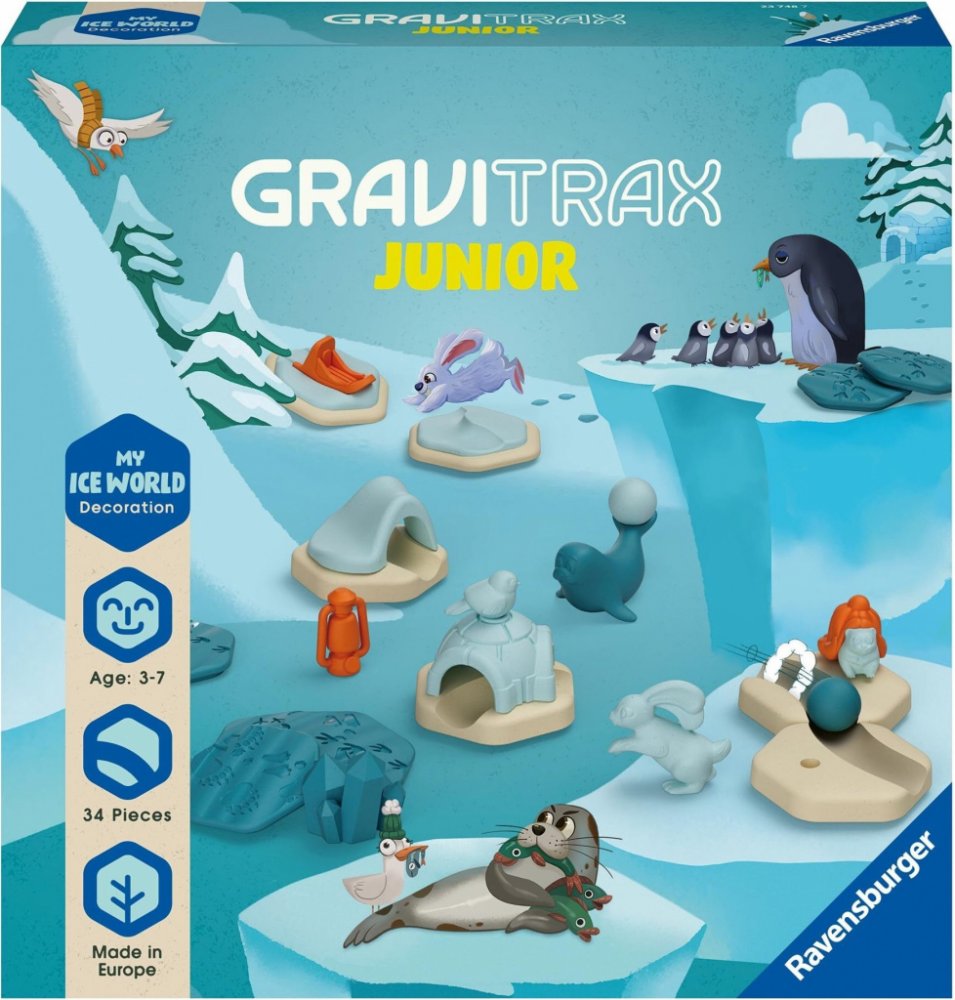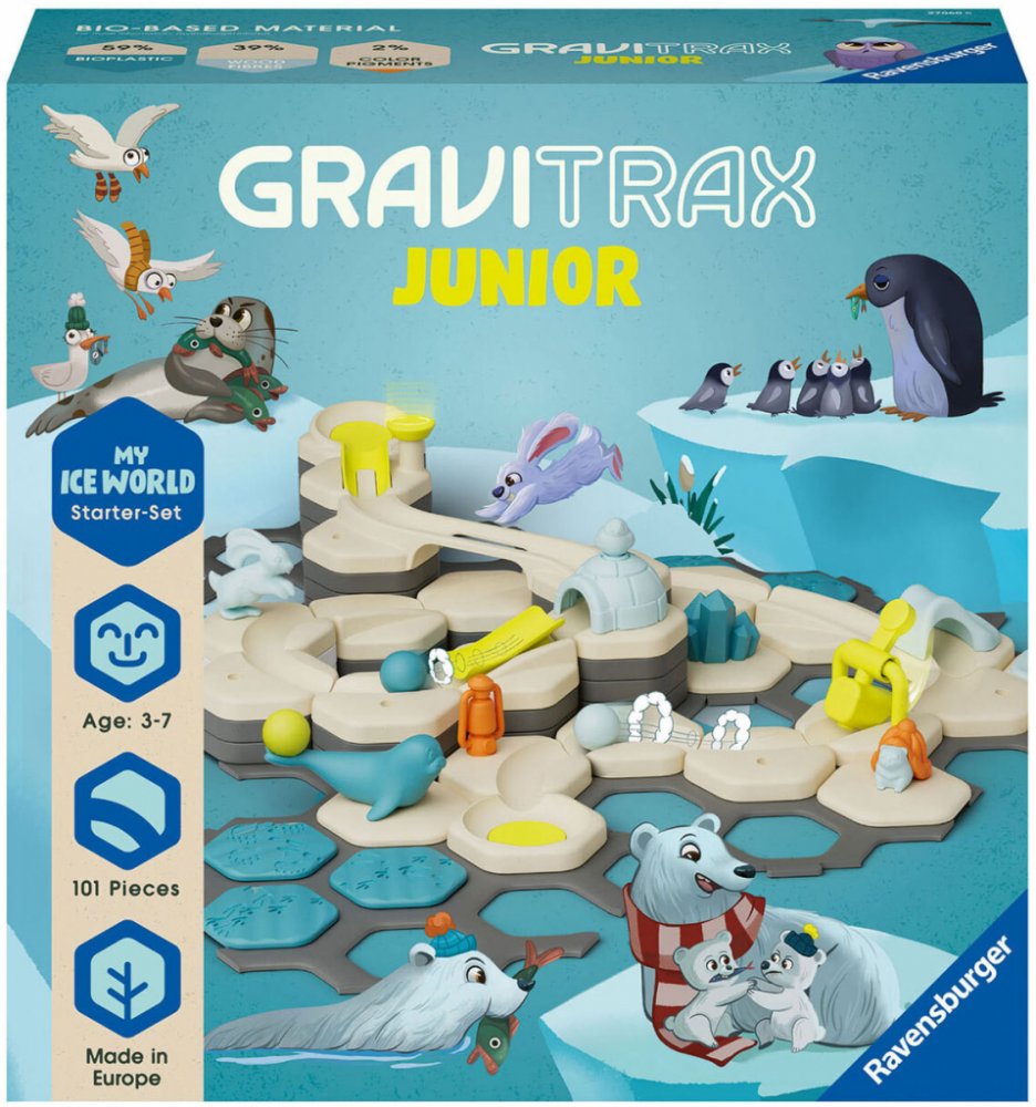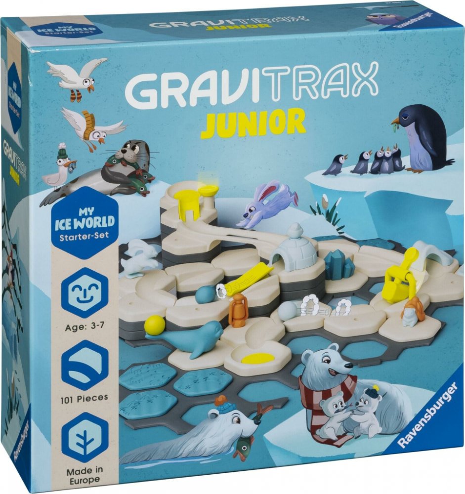 Startovní sada Gravitrax Junior + Dekorace: Ledové království. Vstup do světa GraviTrax Junior se startovní sadou a dekoracemi ve stylu Ledového království. Ti nejmenší si staví své vlastní světy z kuličkových drah a dekoracemi ze světa Ledového království jim dodají pohádkový nádech.