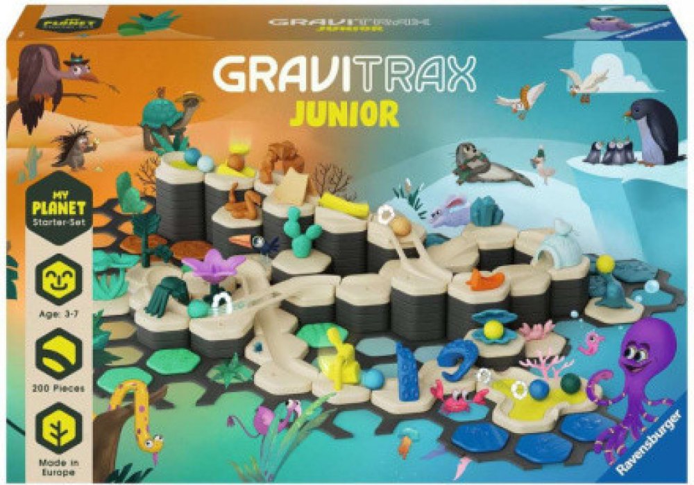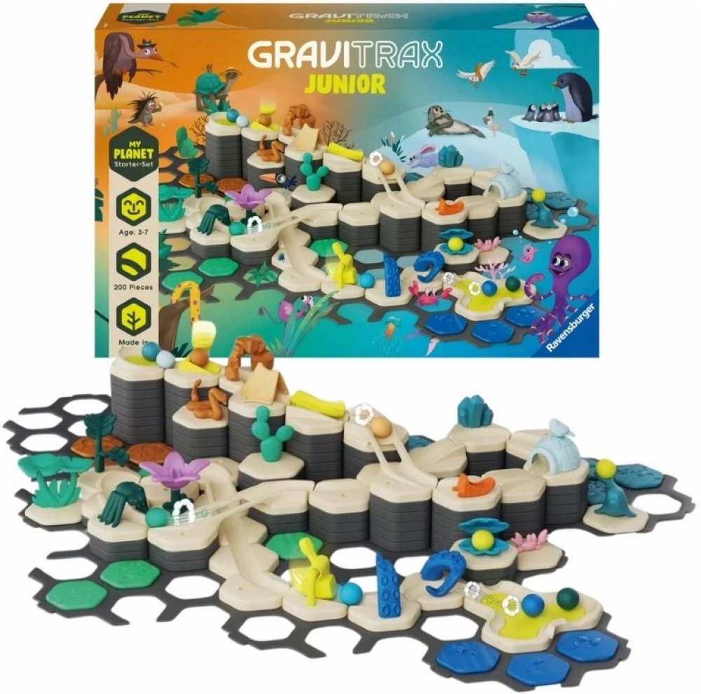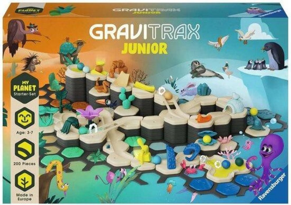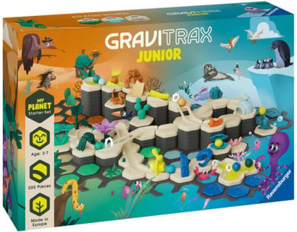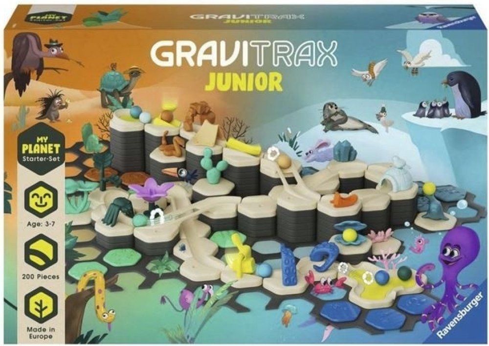 Děti si tak při kreativním stavění užijí mnoho zábavy. GraviTrax Junior Startovní sada Můj svět obsahuje vše, co potřebujete, abyste mohli ihned začít stavět a ponořit se do tematických světů džungle, ledu, pouště a oceánu.