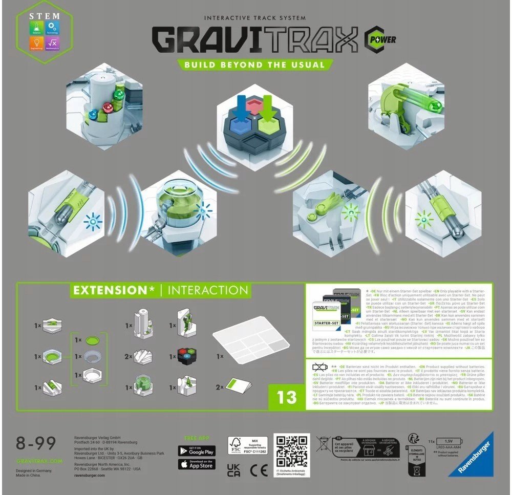 Systém kuličkových drah RAVENSBURGER GraviTrax můžete libovolně rozšiřovat o další a další doplňky a vytvářet tak nové podoby složitých a unikátních cestiček s vytuněnými překážkami. Stavebnice zaručuje nikdy nekončící zábavu okořeněnou rozšiřováním vědomostí o vlastnostech gravitace.