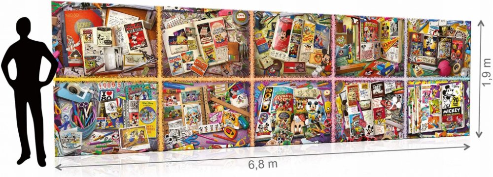 Puzzle od společnosti Ravensburger se vyznačují vysokou kvalitou. Již více než 100 let těší děti i dospělé po celém světě. Perfect Age Fit je funkce, která přizpůsobuje velikost dílků možnostem charakteristickým pro daný vývojový věk, zatímco technologie SoftClick umožňuje přesné sestavení obrázku. Dokonalé tvary a široká škála motivů zaručují, že si na své přijdou milovníci puzzle všech věkových kategorií. Skládačky Ravensburger umožňují získávat cenné dovednosti pomocí funkce učení hrou. Skládačky podporují soustředění, učí postřehu a trpělivosti. Skládačka o 40000 dílcích s ikonickou postavičkou Disney Mickey Mouse je jednou z největších skládaček na světě! Skládačka čítá 40320 dílků a po sestavení vytvoří obraz o impozantní velikosti 6,8 m na délku a 1,9 m na šířku! Obsah a vlastnosti sady: Puzzle s několika ilustracemi Mickey Mouse Počet dílků: 40320 dílků Výrazné motivy na puzzle díky použití přírodní struktury lnu Určeno pro děti od 14 let Není to puzzle.