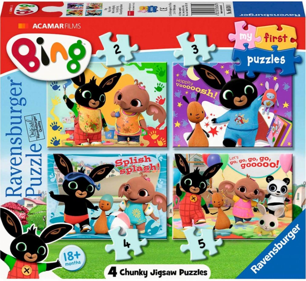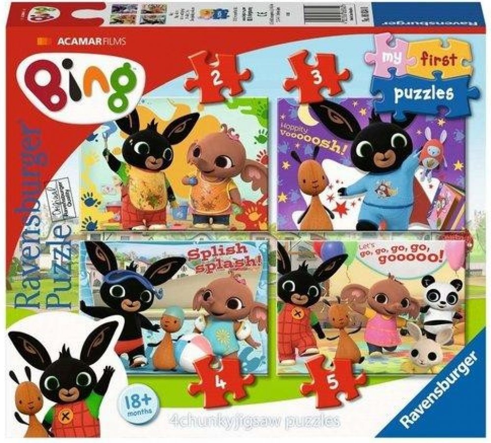 Sada barevných puzzle pro nejmenší s králíčkem Bingem a jeho přáteli.