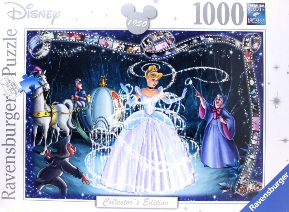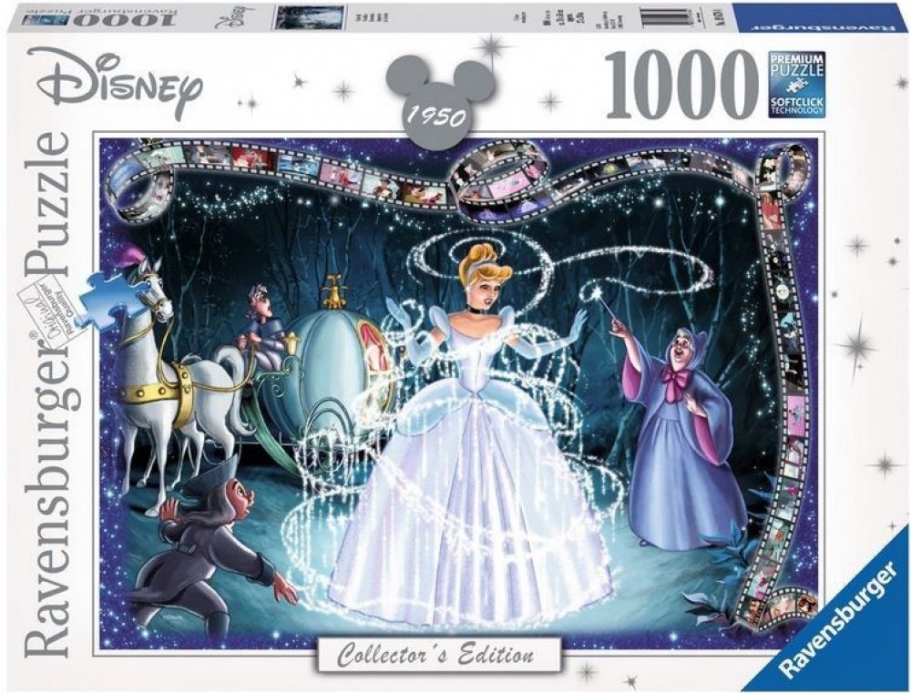 Sběratelská edice Disney je láskyplně navržená sběratelská edice, která přináší všechny slavné Disneyho klasiky: Aladin, Arielle, Popelka, Kniha džunglí, Lví král, Lady a Tramp a mnoho, mnoho dalších. Každá skládačka je jako malá cesta do nádherného pohádkového světa Disney, který dodnes neztratil nic ze svého kouzla. Protože jejich velké příběhy o lásce, přátelství a hrdinství jsou naprosto nadčasové a probouzejí krásné vzpomínky. Puzzle Ravensburger znamenají puzzle zábavu v prvotřídní kvalitě. Stojí za ní desítky let zkušeností s výrobou puzzle a vysoké standardy kvality materiálu, motivu a designu. Například charakteristické dílky puzzle jsou vyrobeny pomocí děrovacích nástrojů, které se stále vyrábějí s nejvyšší hodinářskou přesností v Ravensburgu v Horním Švábsku. Díky této vášni pro kvalitu, důrazu na detail a obrovskému výběru motivů jsou puzzle Ravensburger tak jedinečné a zaručují nezapomenutelný zážitek z puzzle. Od začátečníků až po profesionály: každý milovník hlavolamů si zde najde to pravé! Puzzle 1000 dílků Walt Disney Popelka Toto puzzle je zajímavostí pro všechny fanoušky Disneyho filmu Popelka. Zobrazuje kouzelný okamžik, kdy se Popelka promění v krásnou Popelku s kouzelnými skleněnými střevíčky. V pozadí můžete vidět kmotřičku vílu, kočár a drobné sekvence z filmu. Velikost puzzle přibližně 70 x 50 cm1000 dílků Pro milovníky puzzle od 14 let Puzzle ze Sběratelské série Nezapomenutelné Disney momenty. Disney Popelka Puzzle 1000 dílků