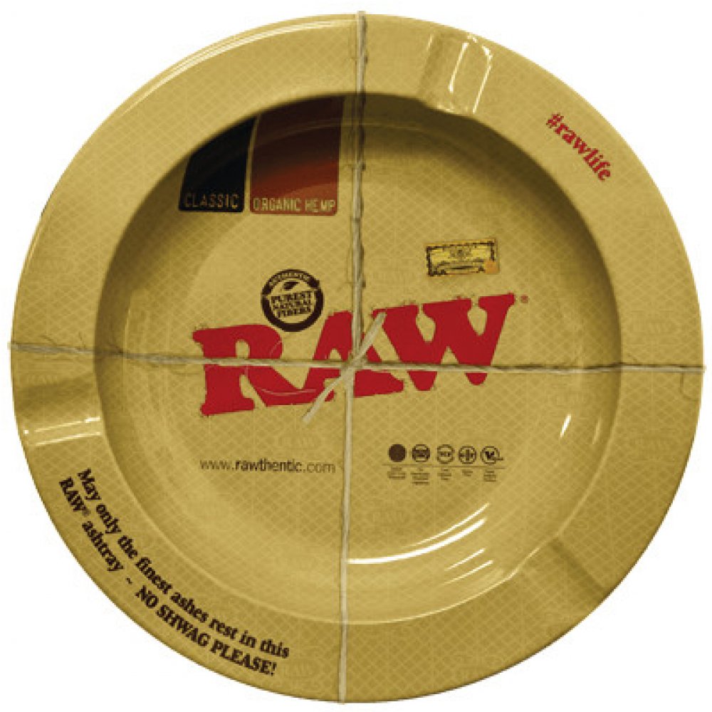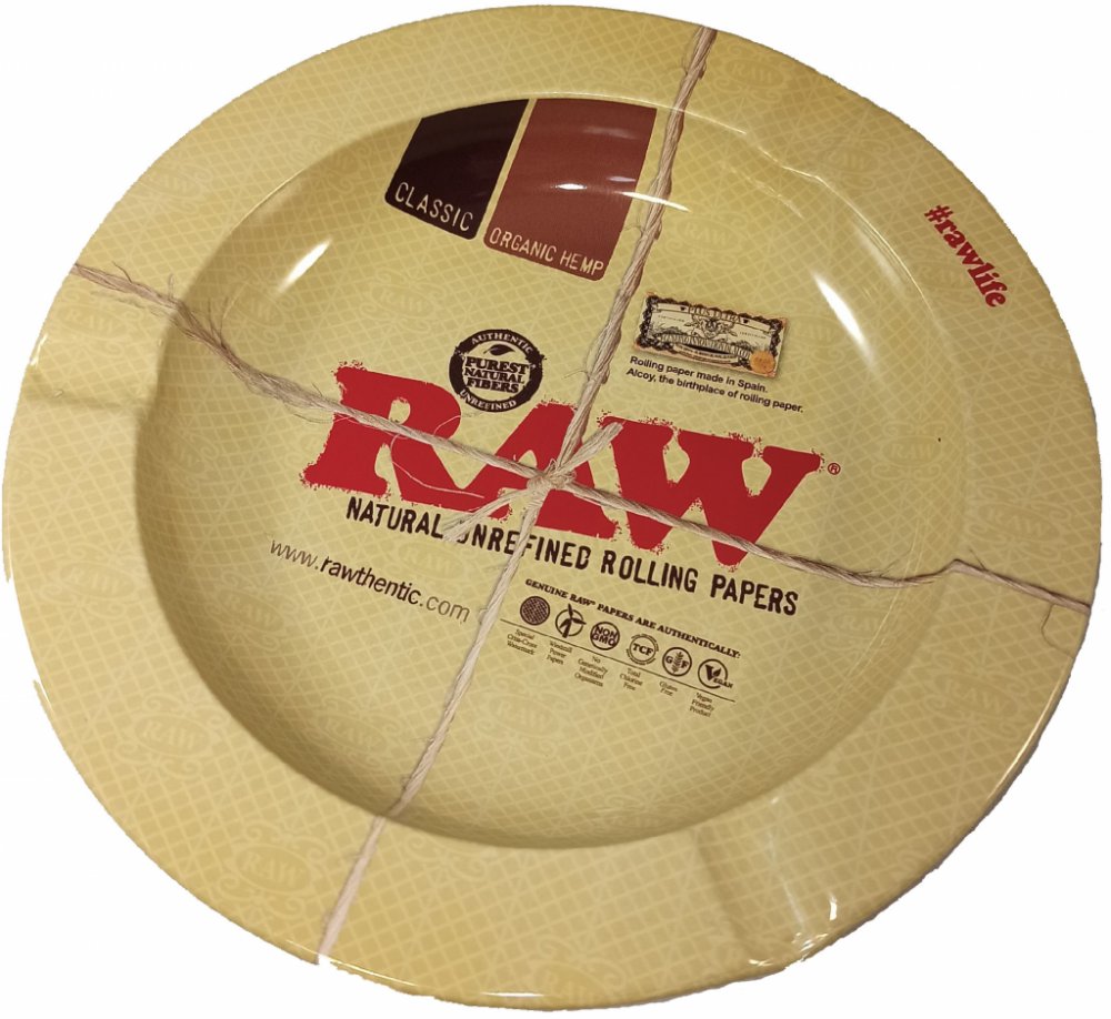 Praktický kovový popelník od firmy Raw.  S potiskem z vrchní strany.