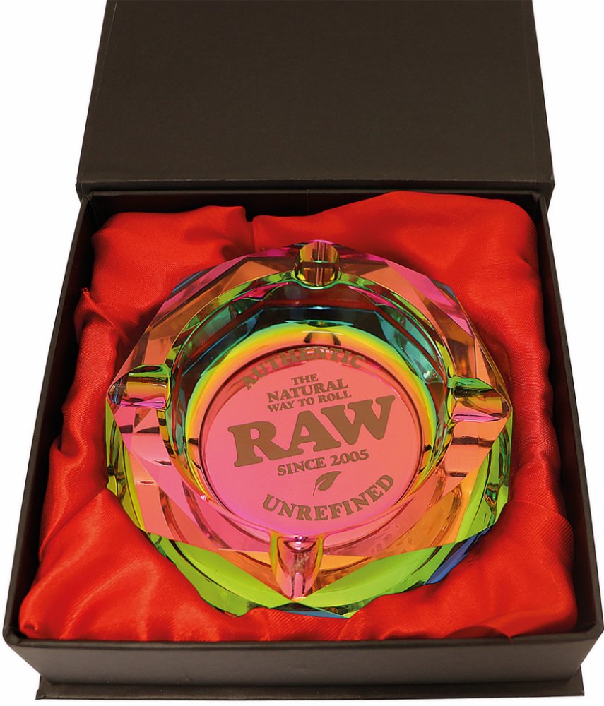 Popelník je dodáván v magneticky uzavřené dárkové krabičce s logem RAW® v duhovém lesku.
