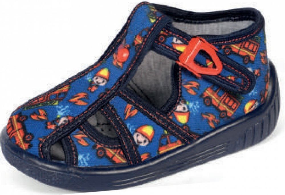 Kvalitní dětská obuv, splňující ortopedické požadavky. Regulace pomoci nártního pásku na přezku, dítě se tak velice rychle naučí papučky zapínat samo. Papučky jsou vybaveny vyjímatelnou měkkou a ohebnou koženou stélkou. Podešev je optimálně flexibilní (kopíruje ohyb chodidla při chůzi) a je neznačkující. Plochý vnitřek spolu s plochou a vyměkčenou stélkou podporují správný vývoj klenby dětské...