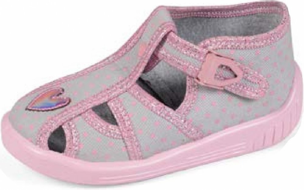 Kvalitní dětská obuv, splňující ortopedické požadavky. Regulace pomoci nártního pásku na přezku, dítě se tak velice rychle naučí papučky zapínat samo. Papučky jsou vybaveny vyjímatelnou měkkou a ohebnou koženou stélkou. Podešev je optimálně flexibilní (kopíruje ohyb chodidla při chůzi) a je neznačkující. Plochý vnitřek spolu s plochou a vyměkčenou stélkou podporují správný vývoj klenby dětské...
