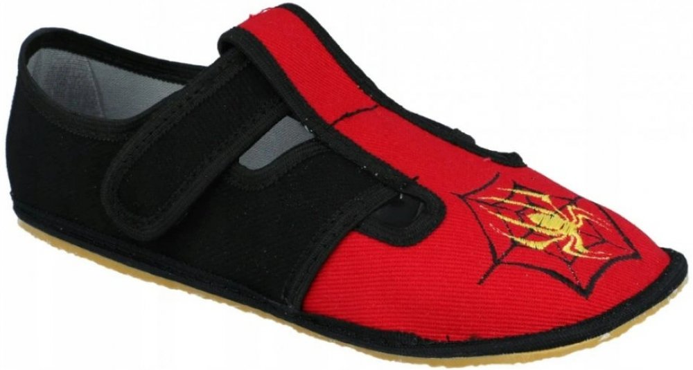 Kvalitní dětská obuv . Regulace pomoci nártního pásku na suchý zip. Papučky jsou vybaveny vyjímatelnou měkkou a ohebnou koženou stélkou. Podešev je barefootová - tenká a velice ohebná - flexibiní a neznačkující a protiskluzová.