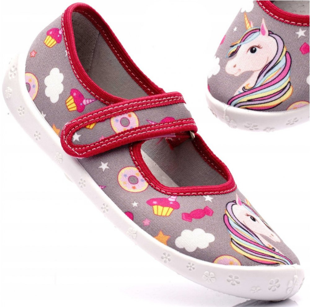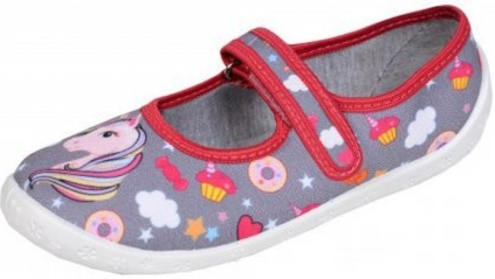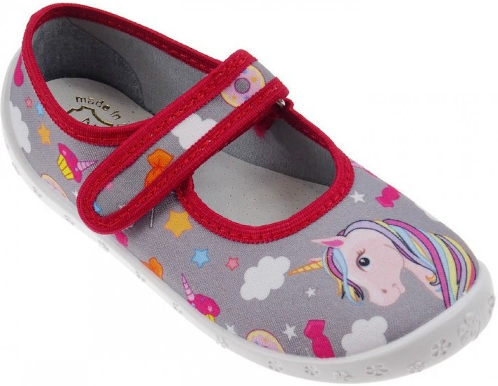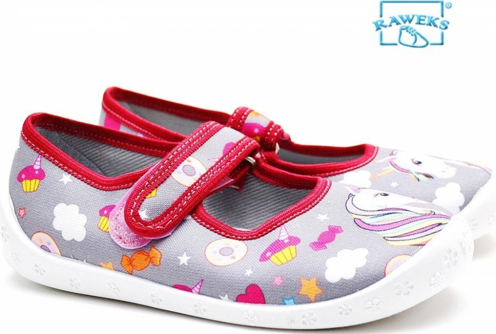 Textilní balerínkové bačkůrky RAWEKS se zapínáním na suchý zip. Velmi lehké. Provětrávaná podešev a kožená vyjímatelná stélka s mírnou klenbou. Certifikát ZDRAVÁ STOPA Polsko - obdoba české ŽIRAFY. Bačkory se nesmí prát v pračce ani sušit na topení. Špínu lze čistit vlhkým kartáčkem či hadříkem.