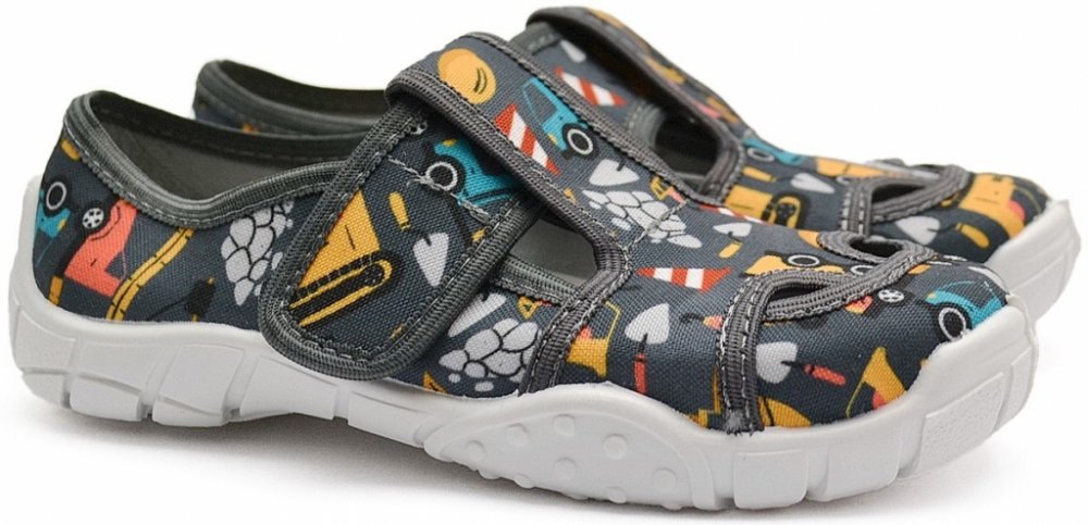 Textilní polootevřené bačkůrky se zapínáním na suchý zip. S vyjímatelnou koženou stélkou. Provětrávané do podešve, pro lepší odvod potu z obuvi. Certifikát ZDRAVÁ STOPA - obdoba české ŽIRAFY. Úzký střih - pouze pro nožičky bez vyššího nártu!!! Země původu: Polsko