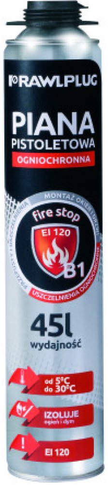 RawlPlug RPP-B1 Protipožární pěna je nízkotlaká jednojednotkové polyuretanová pěna s pistolovým aplikátorem. Má teplotní odolnost -50 °C až 90 °C.