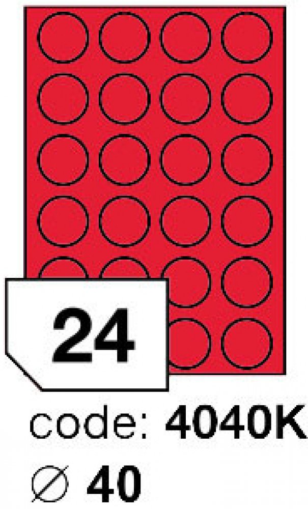 Rayfilm Office etikety jsou papírové etikety určené pro potisk ve všech typech tiskáren a kopírek. Ať už potřebujete cokoli označit, zvýraznit, prostě nalepit, stačí zvolit jeden ze širokého sortimentu materiálů a rozměrů Office etiket. Označení: R0122.4040KA Rozměr: průměr 40 Barva: matně červená Druh: matné Počet etiket: 24 Balení: 100 archů Popis: Červené pastelové etikety pro dekoraci, zvýrazň...