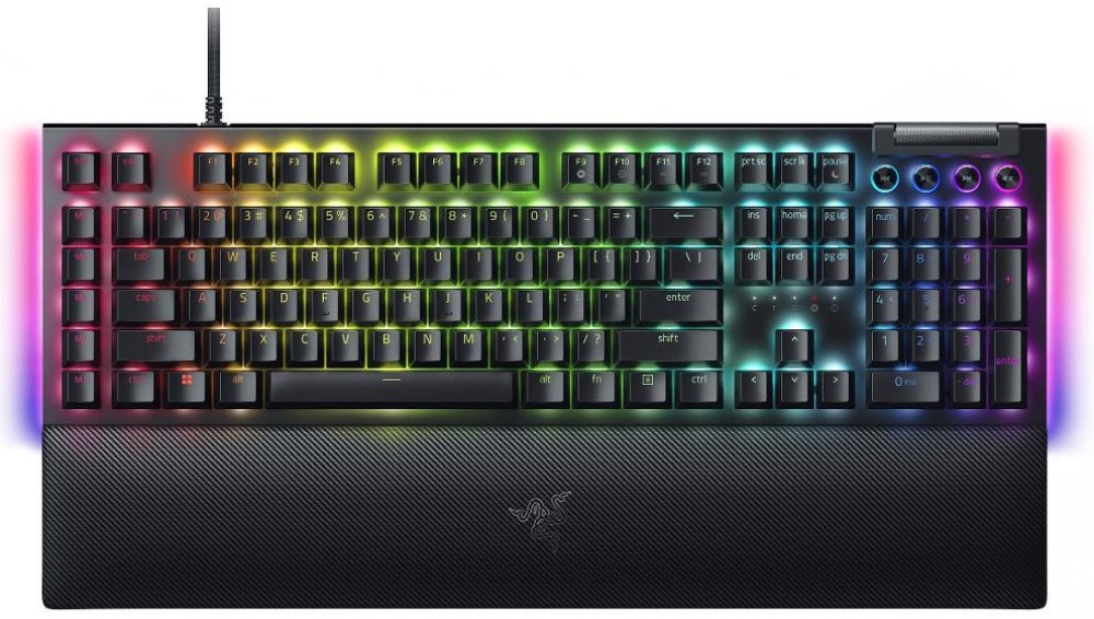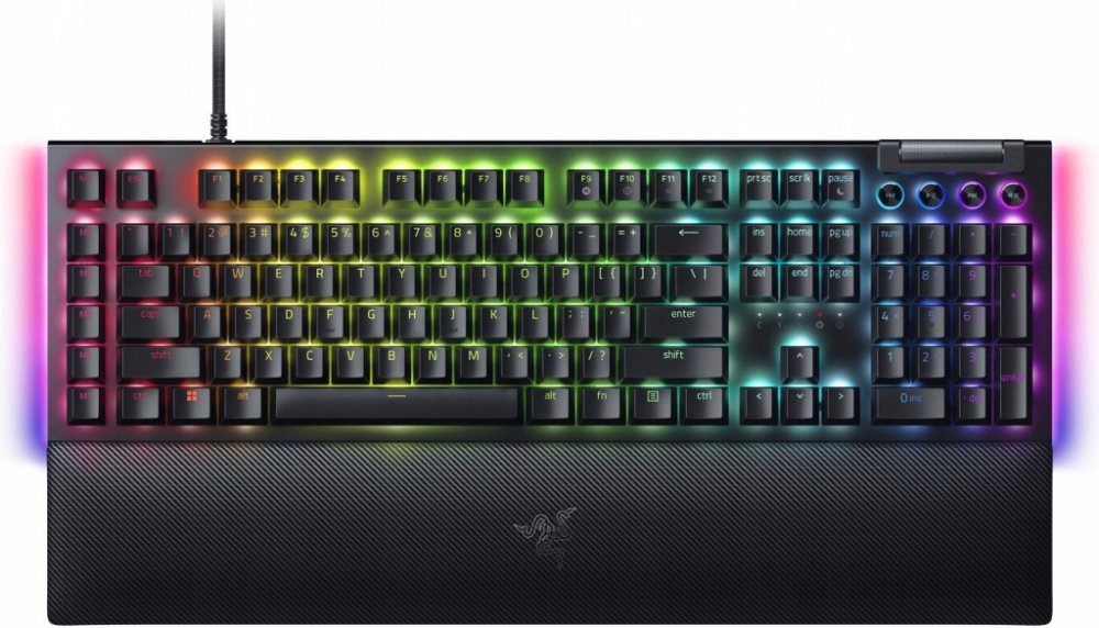 Razer BLACKWIDOW V4 (Yellow Switch) - US herní klávesnice je prvotřídní prostředek na stůl všech hráčů, kteří chtějí ve virtuálním světě her zdolat i toho nejtěžšího soupeře. Okamžitá reakce herní klávesnice a bytelně stavěná tlačítka vaším prstům poskytnou super přesné pohyby, takže dopadnete každého soupeře. Černá barva Razer BLACKWIDOW V4 (Yellow Switch) - US spolu s možností podsvícení klávesnice tvoří ještě k tomu stylový komplement vašeho herního počítače. Úsporné rozměry herní klávesnice nadto nechají dostatek místa pro operace myší. Mechanické klávesy vás potěší při každém stisknutí, při hraní i při psaní, přičemž jejich životnost je podstatně delší, než u klasických membránových. Podstatné vychytávky herní klávesnice Razer BLACKWIDOW V4 (Yellow Switch) - US Multimediální klávesy pro opravdu snadné přetáčení nebo pozastavení hudby Bytelné provedení klávesnice jistí, že tlačítka vydrží hodně dlouho Razer Yellow spínače přináší ojedinělý prožitek při ovládání herní klávesnice Razer Připojení k PC...