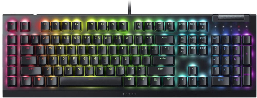 Razer BLACKWIDOW V4 X (Green Switch) - US herní klávesnice představuje prvotřídní prostředek pro všechny hráče, kteří hodlají ve virtuální realitě předvádět ultimátní výkony. Báječná reakce herní klávesnice a bytelné klávesy umožňují rychlé reakce, takže vám žádný soupeř neunikne. Černá barva Razer BLACKWIDOW V4 X (Green Switch) - US spolu s možností podsvícení klávesnice k tomu tvoří osobitý komp...