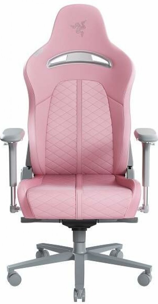 U stolu s herním PC by rozhodně neměla chybět herní židle pro skutečně zdravé sezení. Model Razer Enki Quartz má pečlivě promyšlený design a obstará pohodlí potřebné pro ničím nerušenou hru. Konstrukce této herní židle Razer je kovová. Opěrka pod hlavu je u herních židlí bez mála nezbytná a proto u tohoto modelu nechybí, opřete se celými zády. Razer Enki Quartz disponuje možností nastavení výšky, má ty nejlepší vlastnosti pro dlouhodobější sezení. Klíčové přednosti herní židle Razer Enki Quartz Růžová barva je součástí efektního designu herní židle Razer Hlavová opěrka dovolí zapřít se opravdu celou plochou zad Odolná kovová konstrukce Dostatečná maximální nosnost herní židle Razer činí 136 kg Materiálem potahů je syntetická kůže Přizpůsobení: výšky sedáku Příjemné materiály herní židle Razer Enki Quartz Herní židle Razer výrazně vylepší váš herní koutek. Syntetický kožený potah Razer Enki Quartz má velmi efektní a působivý vzhled.