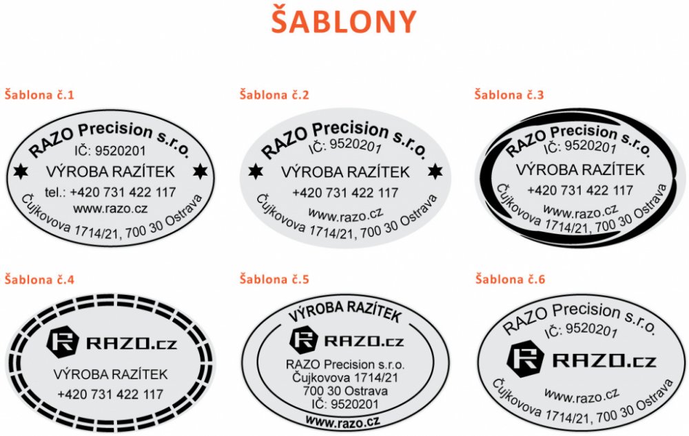Razítkový štoček oválný s maximální velikostí otisku 45 x 30 mm.