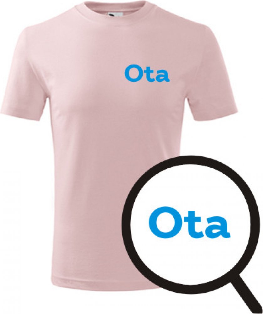 Růžové dětské tričko Ota. nabízené velikosti jsou 4 roky, 6 let, 8 let, 10 let, 12 let. Výběr z 13ti barev. Tričko patří do kategorií Trička se jménem na hrudi dětská - chlapecká, . Technologie potisku: Tisk na tričko je realizován pomocí termolisu a potisk je velice trvanlivý.