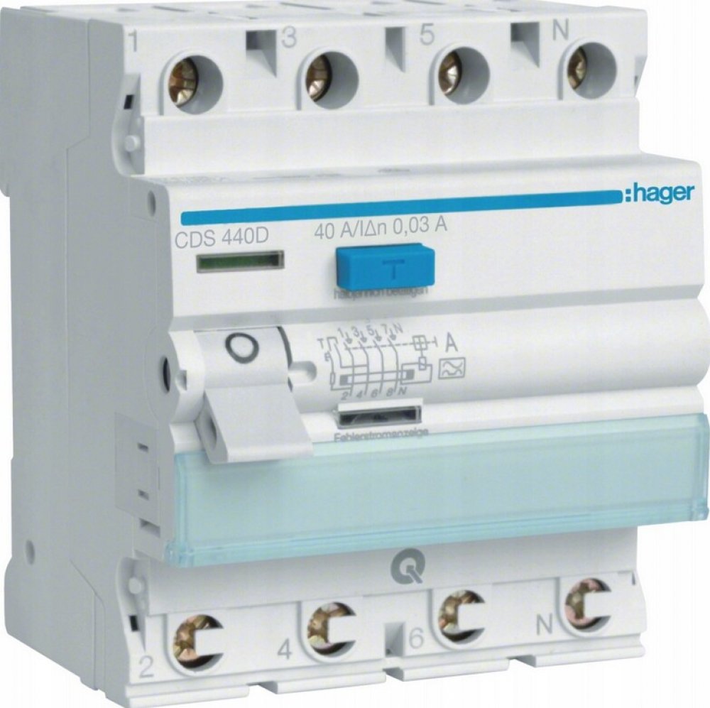 - Typ: RCCB, 3P+N, Typ A