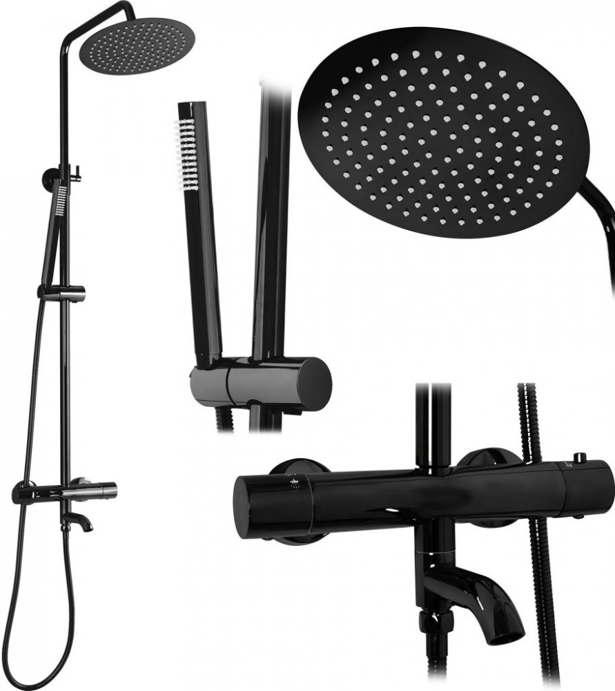 Sprchová sada s termostatem byla navržena za účelem dosažení Vašeho maximálního pohodlí a jedinečného designu. Vysoká kvalita použitých materiálů zaručují odolnost a vysokou spolehlivost po mnoho let.Moderní, designérská sprchová sada neobyčejných tvarů série Rea Lungo obsahuje termostatickou baterii, vyrobenou z mosazi vysoké kvality v elegantním matně černém provedení. Lakování baterie bylo prov...