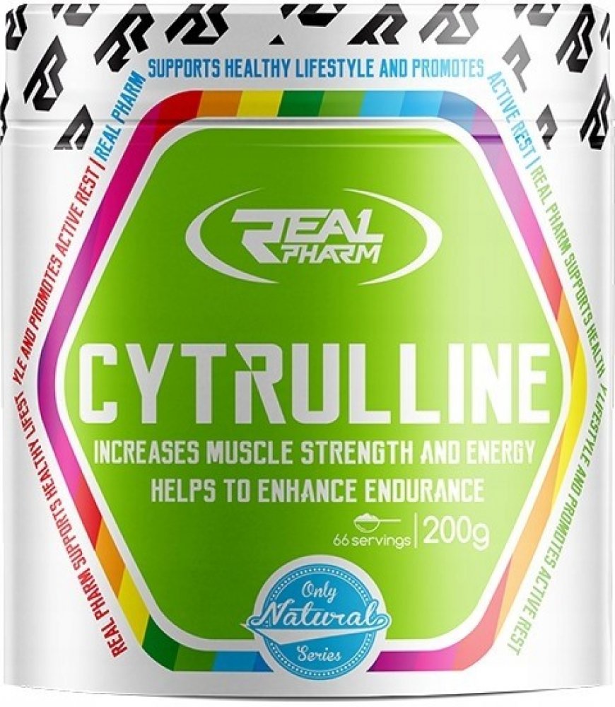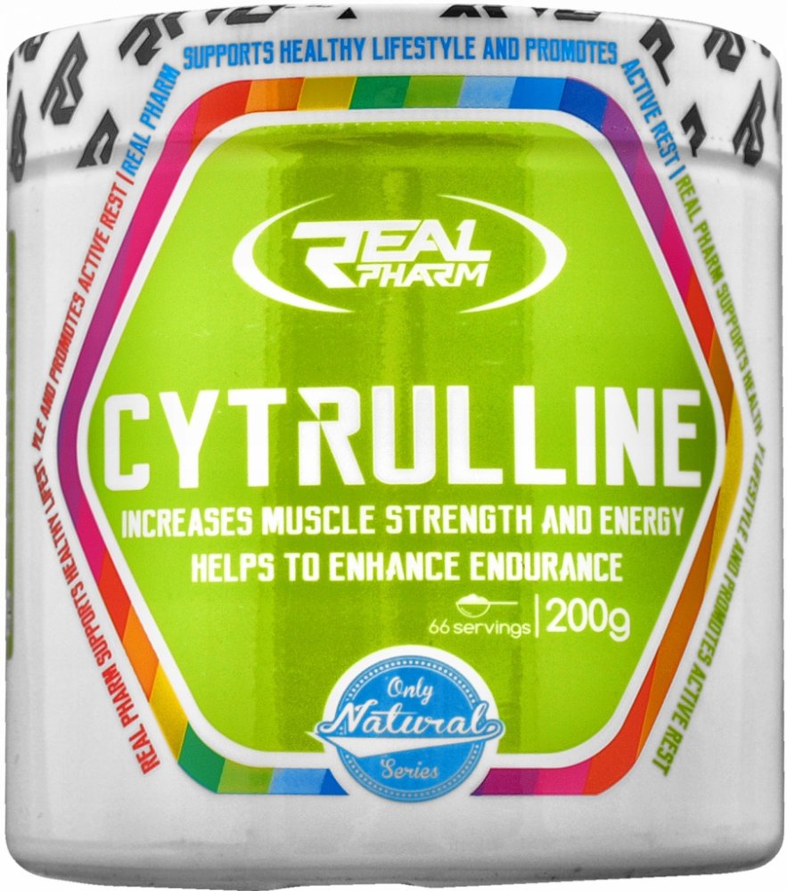 Doplněk stravy Real Pharm Cytrulline je vysoce kvalitní doplněk stravy ve formě prášku určený všem fyzicky aktivním i profesionálním sportovcům. Doplněk stravy umožňuje doplnit každodenní stravu o vysoce kvalitní citrulin jablečnan, který si lidské tělo nedokáže samo vytvořit.