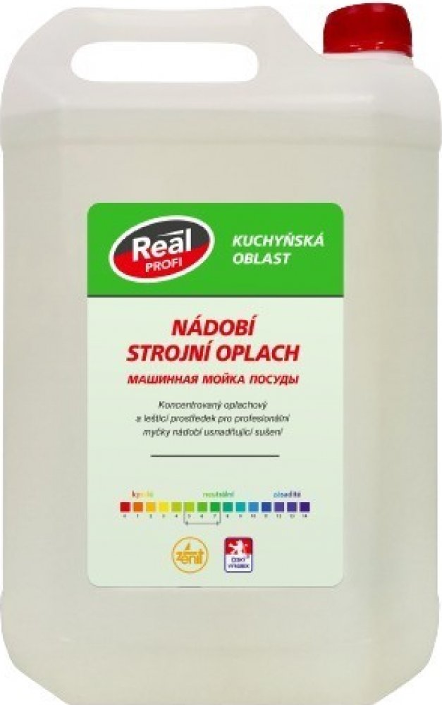 Zamezuje tvorbě minerálních usazenin na nádobí a usnadňuje sušení. Neutralizuje prostředek po hlavní mycí fázi. Pomáhá dosáhnout původního lesklého vzhledu nádobí. Je vhodný k použití v kombinaci s prostředkem Real profi strojní mytí nádobí.