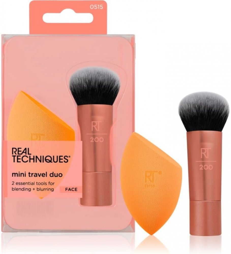 Real Techniques Mini Travel Real Techniques Mini štětec na make-up 1 ks + Real Techniques Original Collection Base houbička na make-up 1 ks