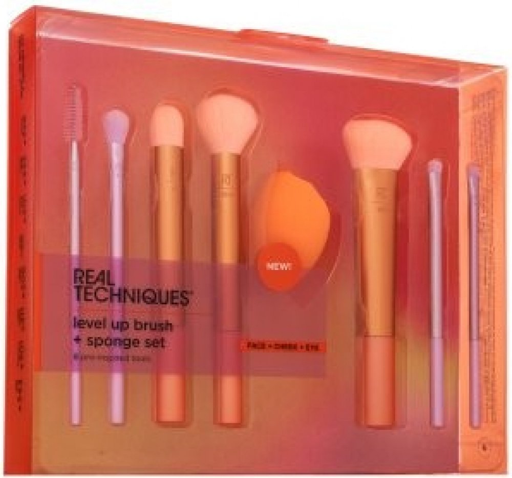 Real Techniques Vivid Nostalgia RT 343 kartáček na obočí + RT 301 štětec na aplikaci podkladové báze na oči + RT 411 štětec na rozjasňovač + RT 206 štětec na konturování a bronzer + RT 401 štětec pro