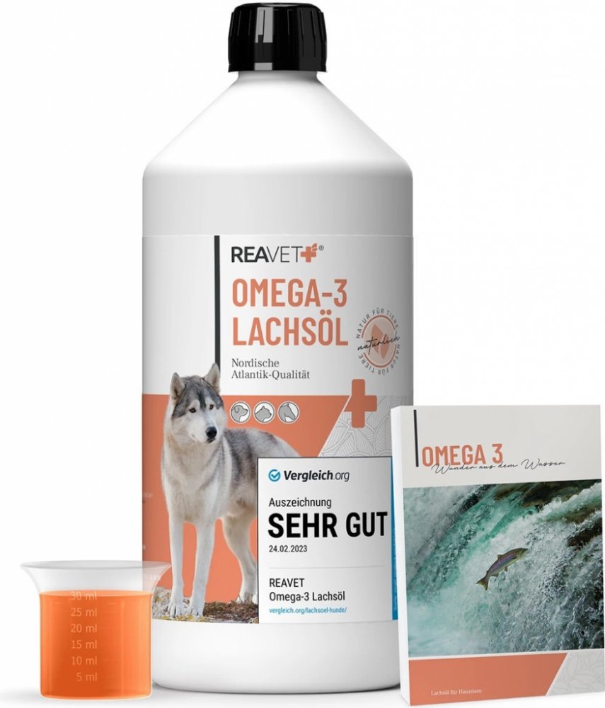 Lososový olej REAVET je obohacením misky psů a koček, protože optimalizuje denní stravu o všechny potřebné mastné kyseliny. Ať už jde o syrové krmení, vařená jídla nebo jako doplněk k suchému či mokrému krmivu – lososový olej REAVET zlepšuje každodenní výživu vašeho zvířete.