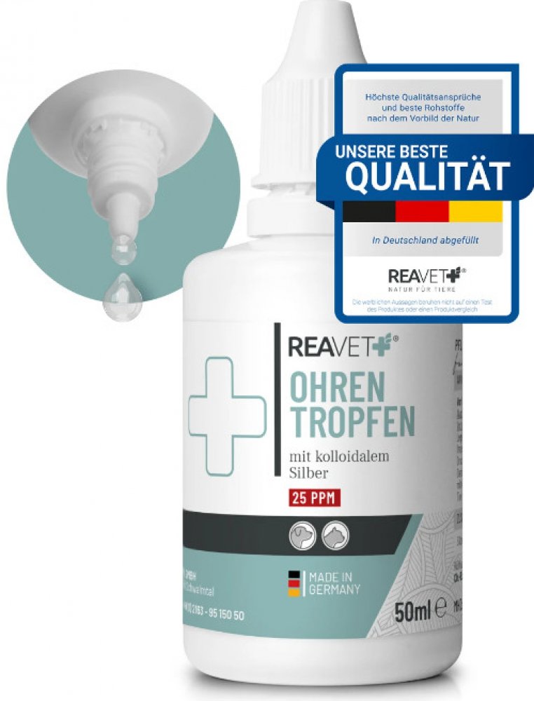 Pokud dojde k infekci ucha, měli byste uši nejprve zkontrolovat a v případě potřeby odstranit cizí tělesa (části rostlin z venku, nečistoty apod.). Naše ušní kapky REAVET s koloidním stříbrem pro psy a kočky mají preventivní i akutní účinek a čistí, pečují a zklidňují uši vašich mazlíčků.