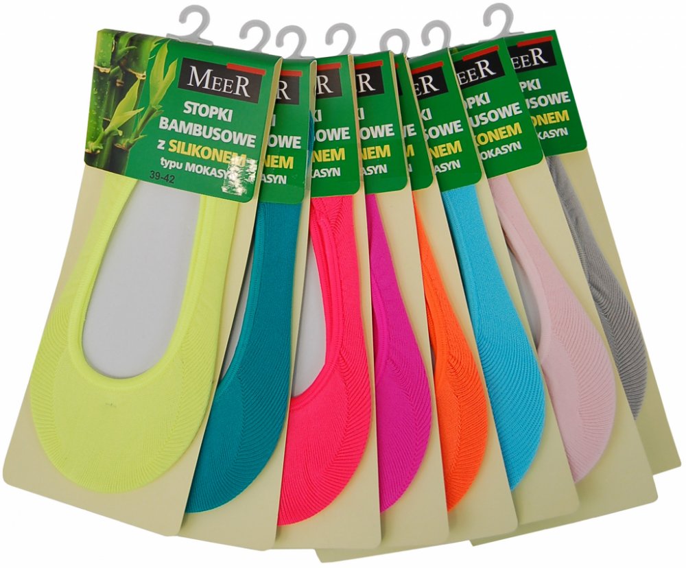 Rebeka dámské ponožky baleríny 1078, které jsou vyrobené z měkkého a příjemného bambusového vlákna s přídavkem elastických přízí. Model má na vnitřní straně paty silikon, díky kterému se ponožky při nošení nesesouvají. Ponožky se ideálně přizpůsobují chodidlu a chrání před odřeninami.