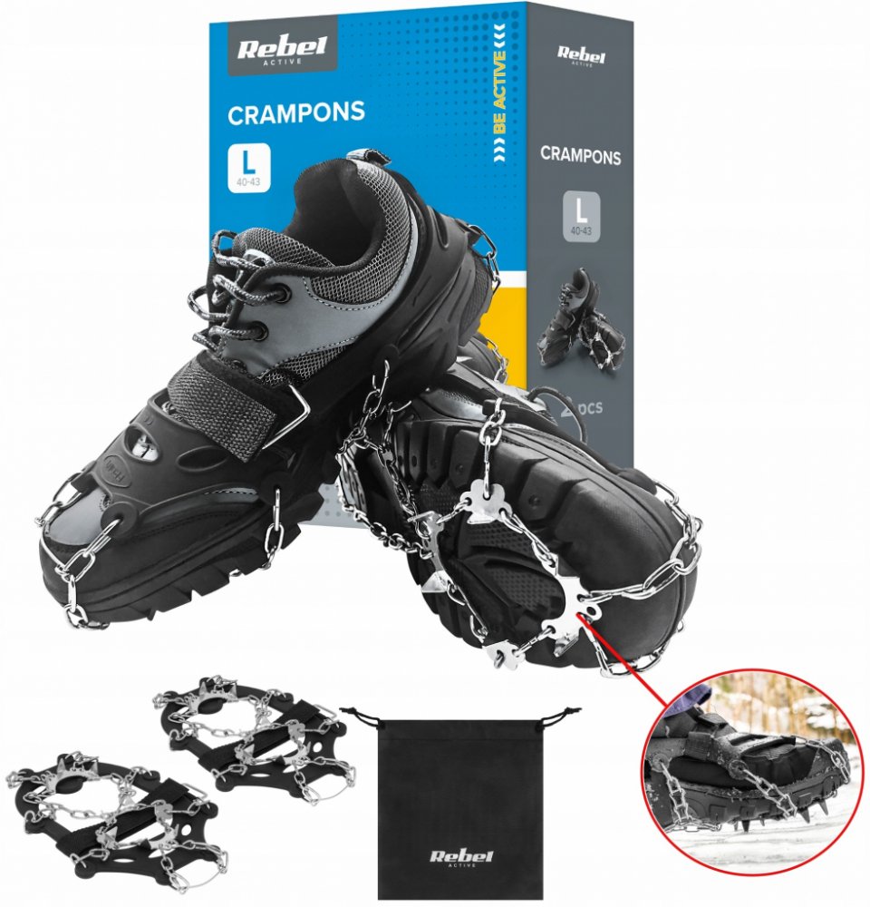Návleky s hroty REBEL ACTIVE jsou vynikajícím příslušenstvím pro turisty a milovníky horských túr, které poskytuje jistotu a bezpečnost na kluzkých površích. Určené pro turistickou obuv ve velikosti XL (44-47), návleky nabízejí efektivní řešení na ledu a sněhu.